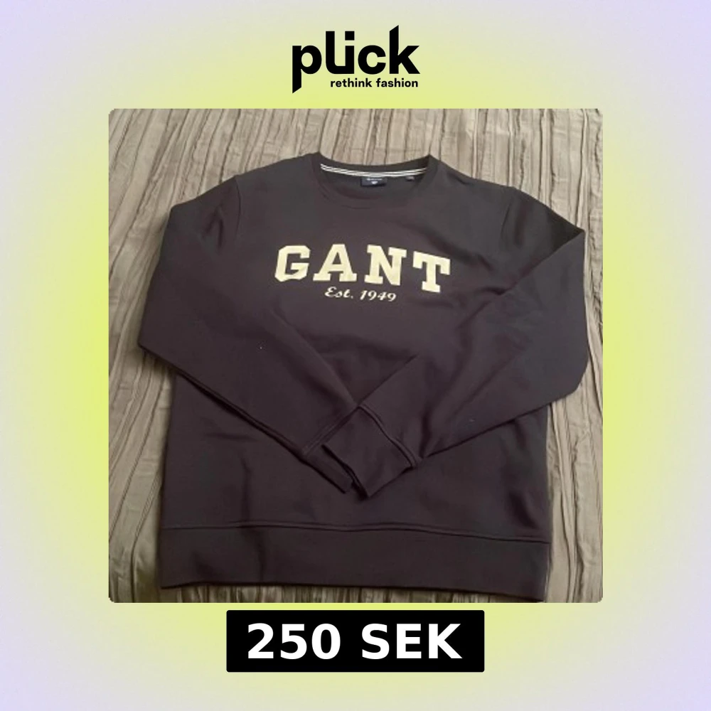Marinblå sweatshirt från GANT med stor beige logotyp och texten 'Est. 1949' på bröstet. Tröjan har rund hals, långa ärmar och ribbade muddar. Materialet känns mjukt och har en klassisk, stilren look som passar perfekt till jeans eller chinos.