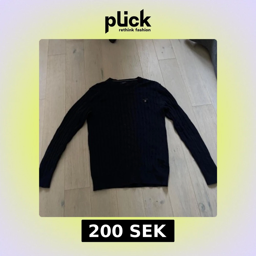 Säljer en mörkblå stickad tröja från GANT i storlek L. Tröjan har ett klassiskt kabelstickat mönster och rund hals. Perfekt för dig som gillar stilrena och tidlösa plagg. GANT-logga broderad på bröstet. Långärmad och mjuk kvalitet.