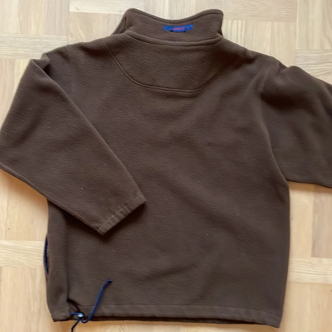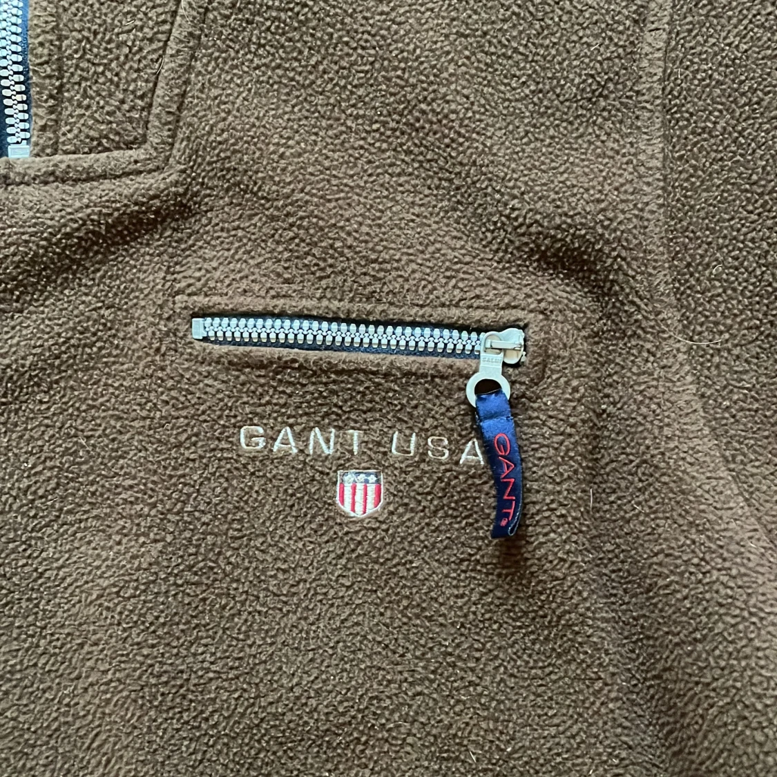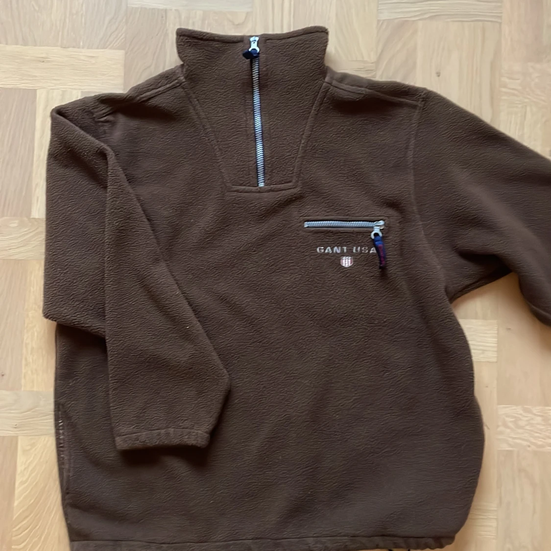 Mysig brun fleece-tröja från GANT med halv dragkedja och broderad logga på bröstet. Tröjan har en praktisk bröstficka med dragkedja och långärmade ärmar. Perfekt för kyliga dagar och enkel att slänga på sig över en t-shirt. En ficka löper längs hela tröjan nedtill, praktisk! Dragsko i midjan för att kunna ändra hur den sitter.