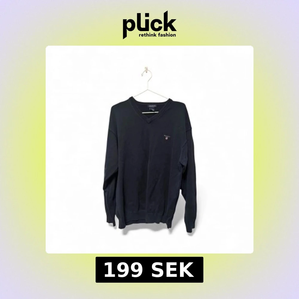 Svart v-ringad tröja från GANT i storlek L. Klassisk design med diskret logga broderad på bröstet. Tröjan har långa ärmar och ribbade muddar vid hals, ärmslut och nederkant. Perfekt för dig som gillar stilrena och tidlösa plagg.