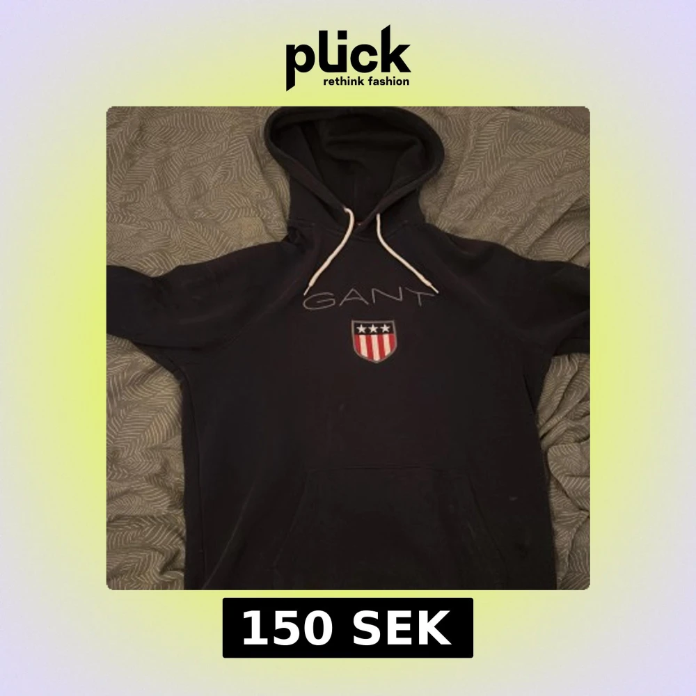 Svart hoodie från GANT med vit snörning och stort broderat emblem på bröstet. Tröjan har huva, känguruficka och GANT-logga med amerikanskt inspirerat sköldmärke i rött, vitt och blått. Perfekt för chill dagar och streetstyle.