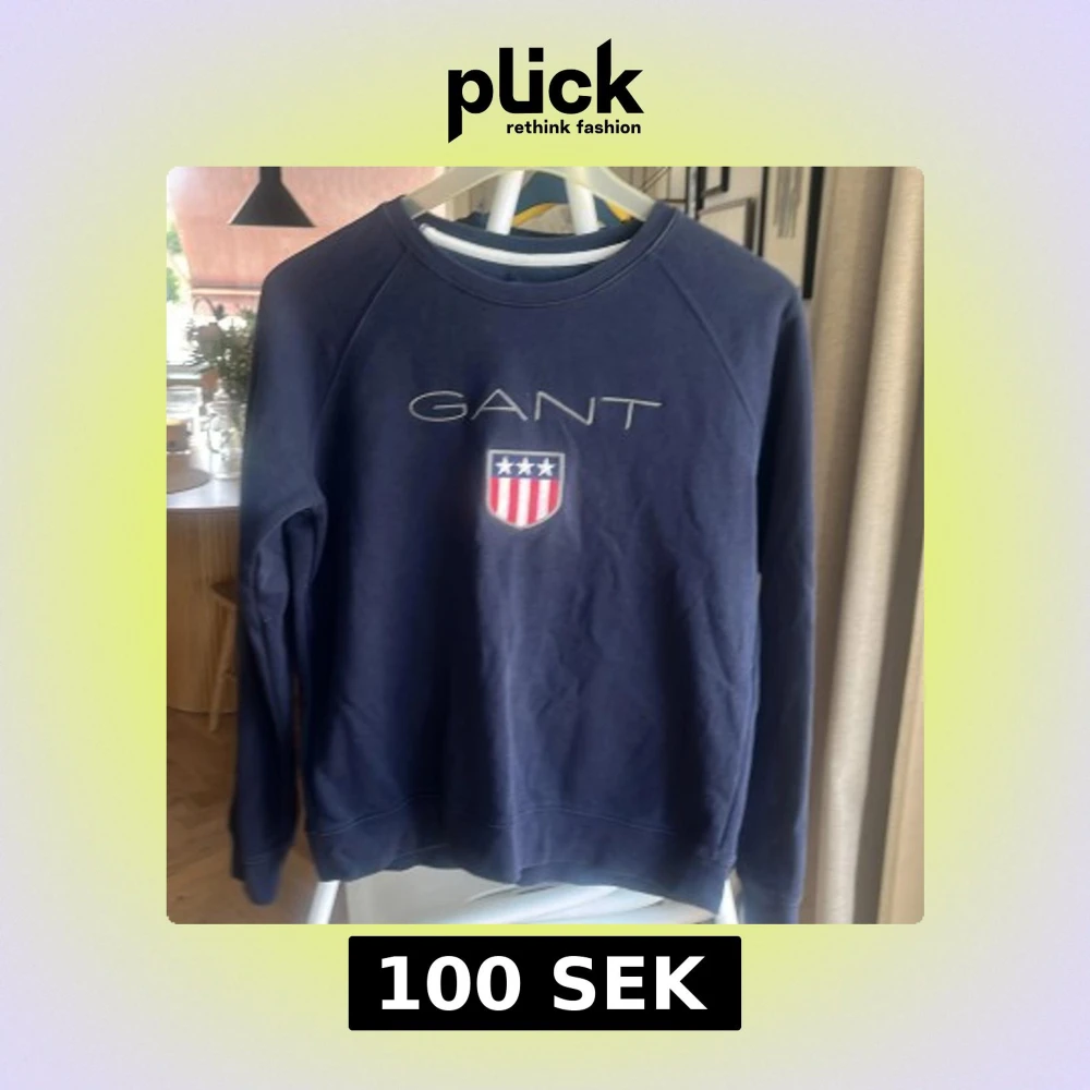 Säljer en stilren mörkblå sweatshirt från GANT med deras ikoniska logga och emblem på bröstet. Tröjan har långa ärmar och en rund halsringning. Perfekt för en avslappnad och snygg look.