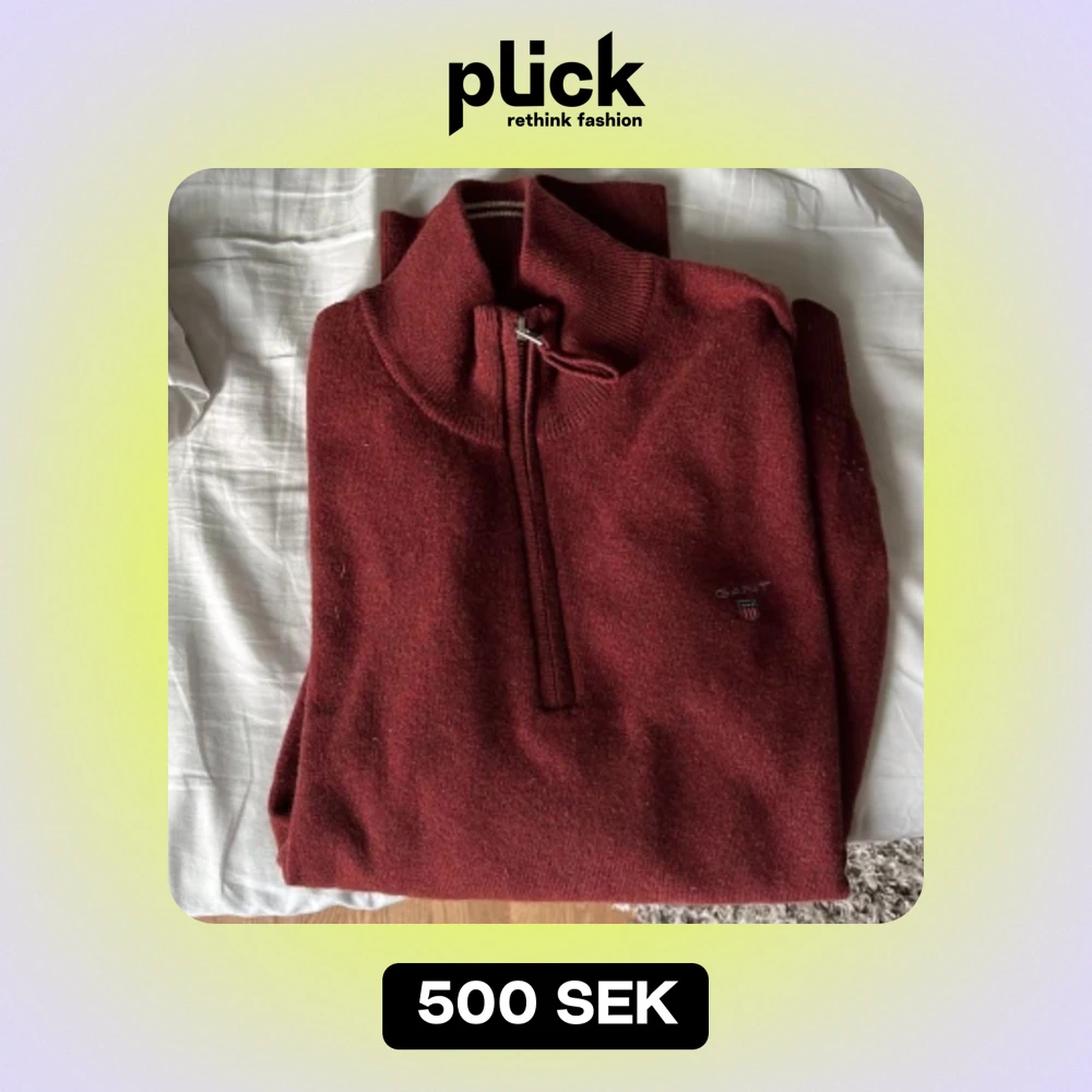 Helt ny lammull 1/4 zip från Gant. Hög kvalite på ullet, likvärdighet till merinoull men enligt mig skönare. Väldigt fin färg nu till hösten. Normal passform
