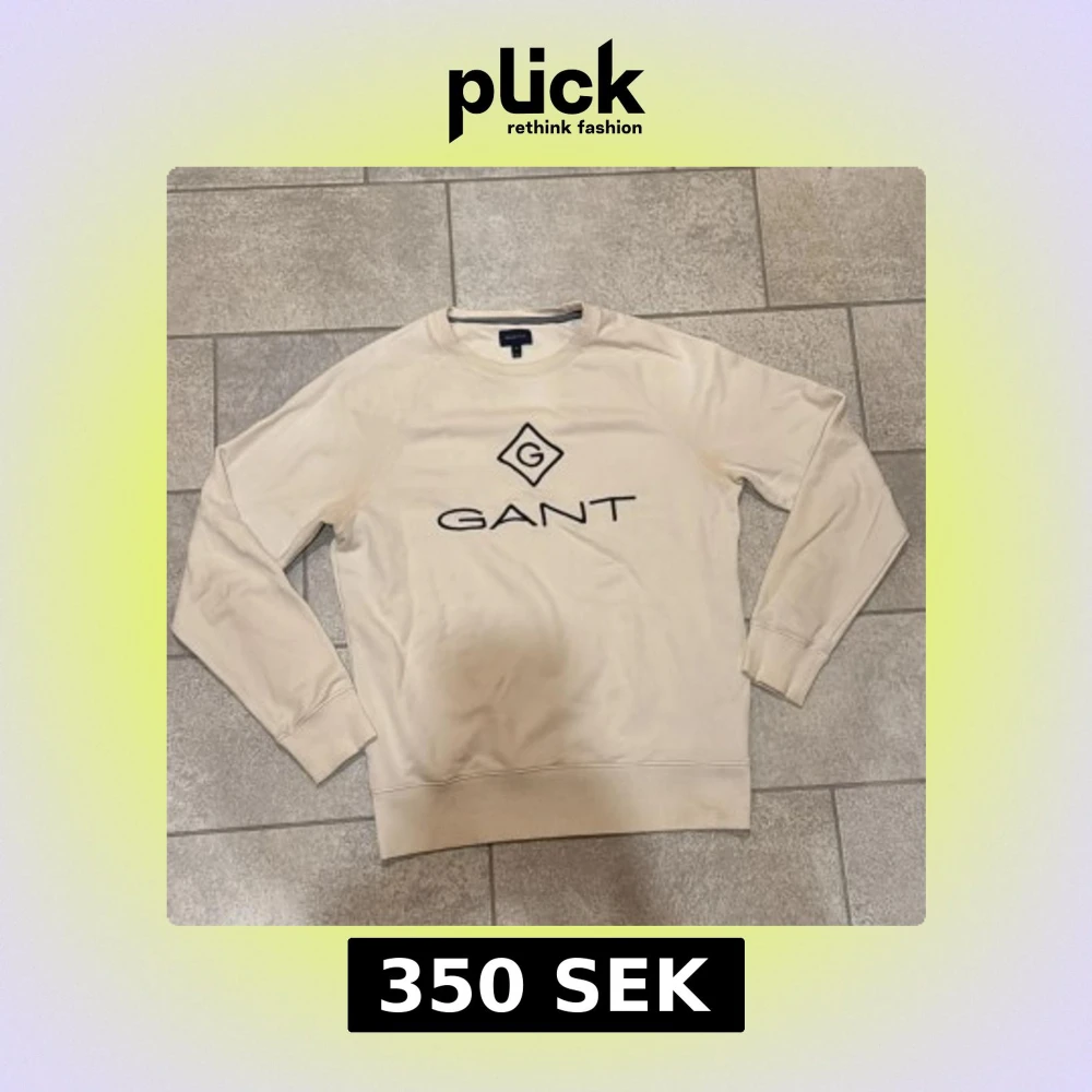 Säljer en stilren vit sweatshirt från GANT med deras ikoniska logga tryckt på framsidan. Tröjan har långa ärmar och en klassisk rund halsringning. Perfekt för en avslappnad och trendig look.