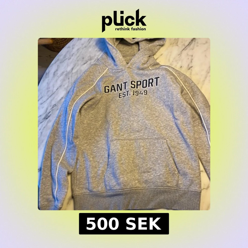 Säljer en snygg grå hoodie från GANT med texten 'GANT SPORT EST. 1949' på framsidan. Tröjan har en klassisk känguruficka och en bekväm huva. Perfekt för en avslappnad stil.