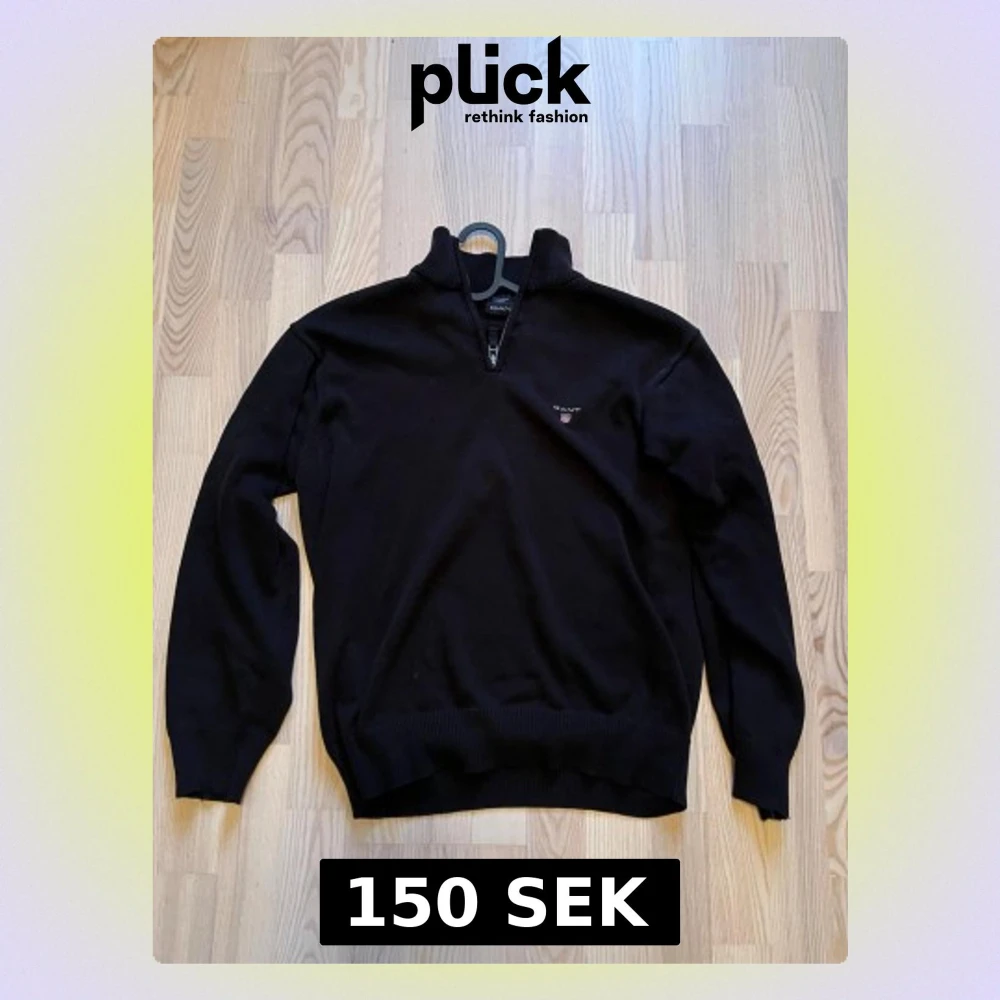 Mörkblå quarter zip tröja från Gant. Sparsamt använd och i ett extremt bra skick. Skicka ett meddelande vid frågor!