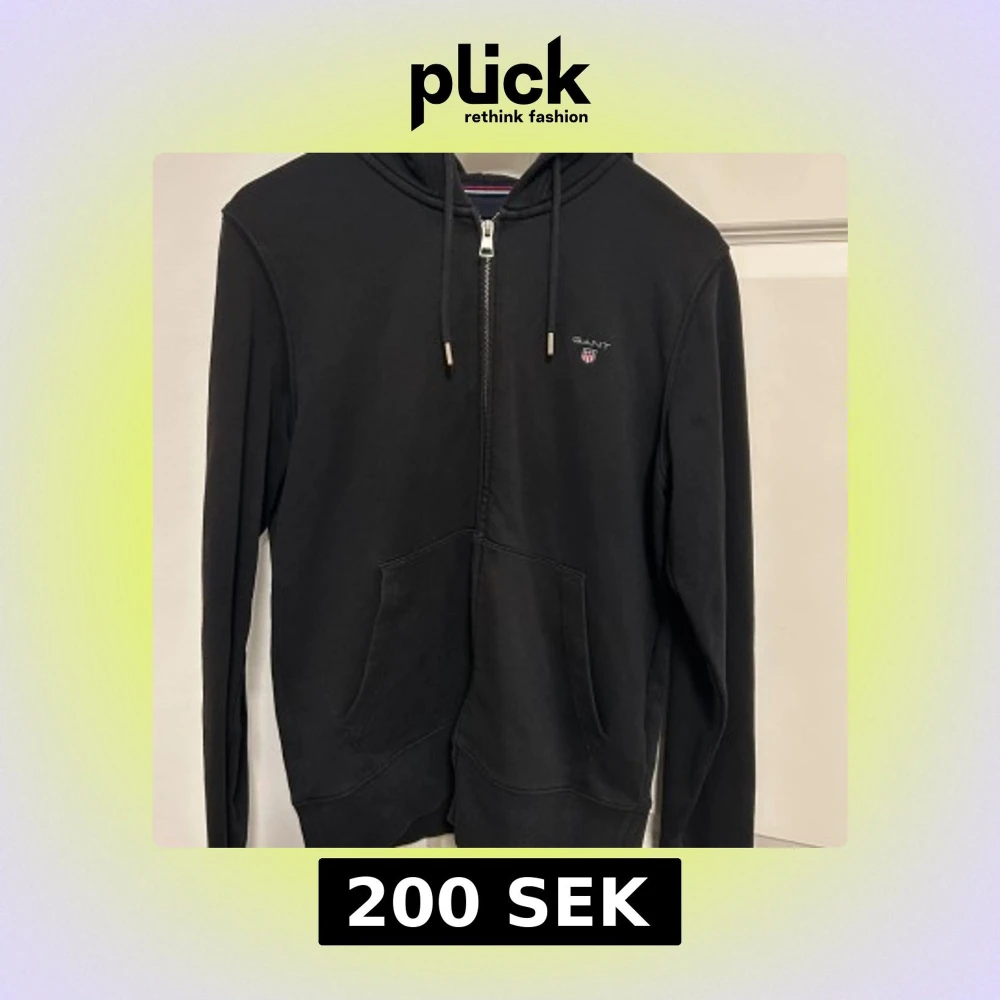 Svart hoodie från Gant med hel dragkedja, huva med snörning och två stora fickor framtill. Klassisk logga broderad på bröstet. Skön passform och perfekt för lager-på-lager. Tillverkad i mjuk bomullsmix.