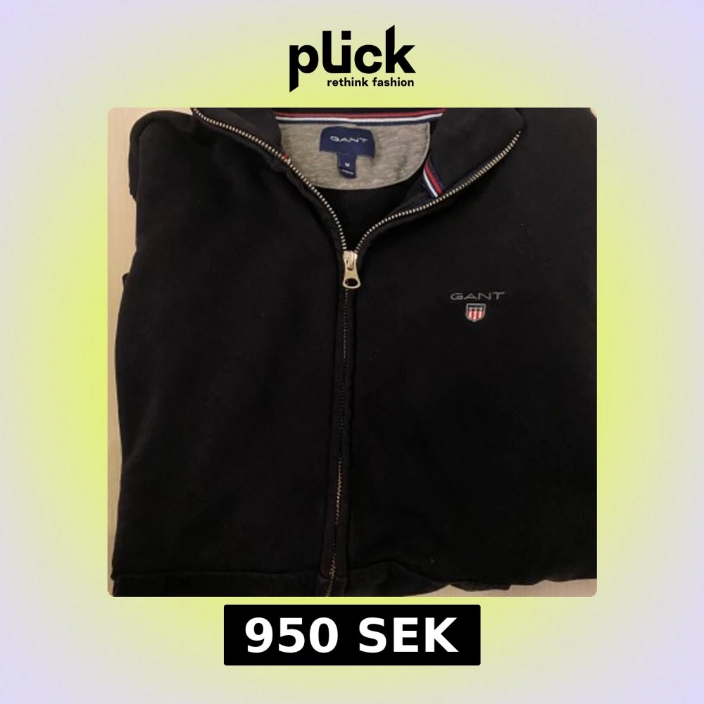 Säljer en stilren svart jacka från GANT med dragkedja och broderad logotyp på bröstet. Jackan har långa ärmar och ribbade muddar vid ärmslut och nederkant. Perfekt för en casual look.