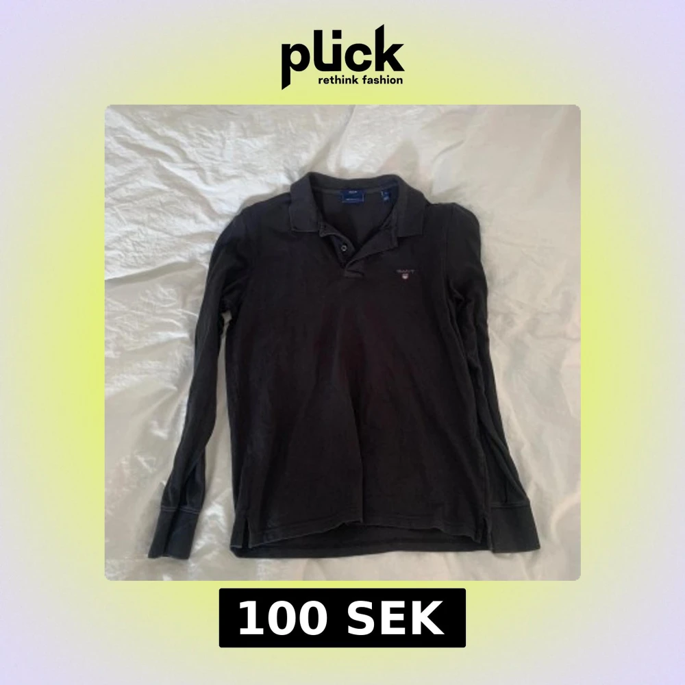 Säljer en stilren svart långärmad pikétröja från Gant. Tröjan har en klassisk krage och knappar framtill. Perfekt för en avslappnad men ändå snygg look. 🖤