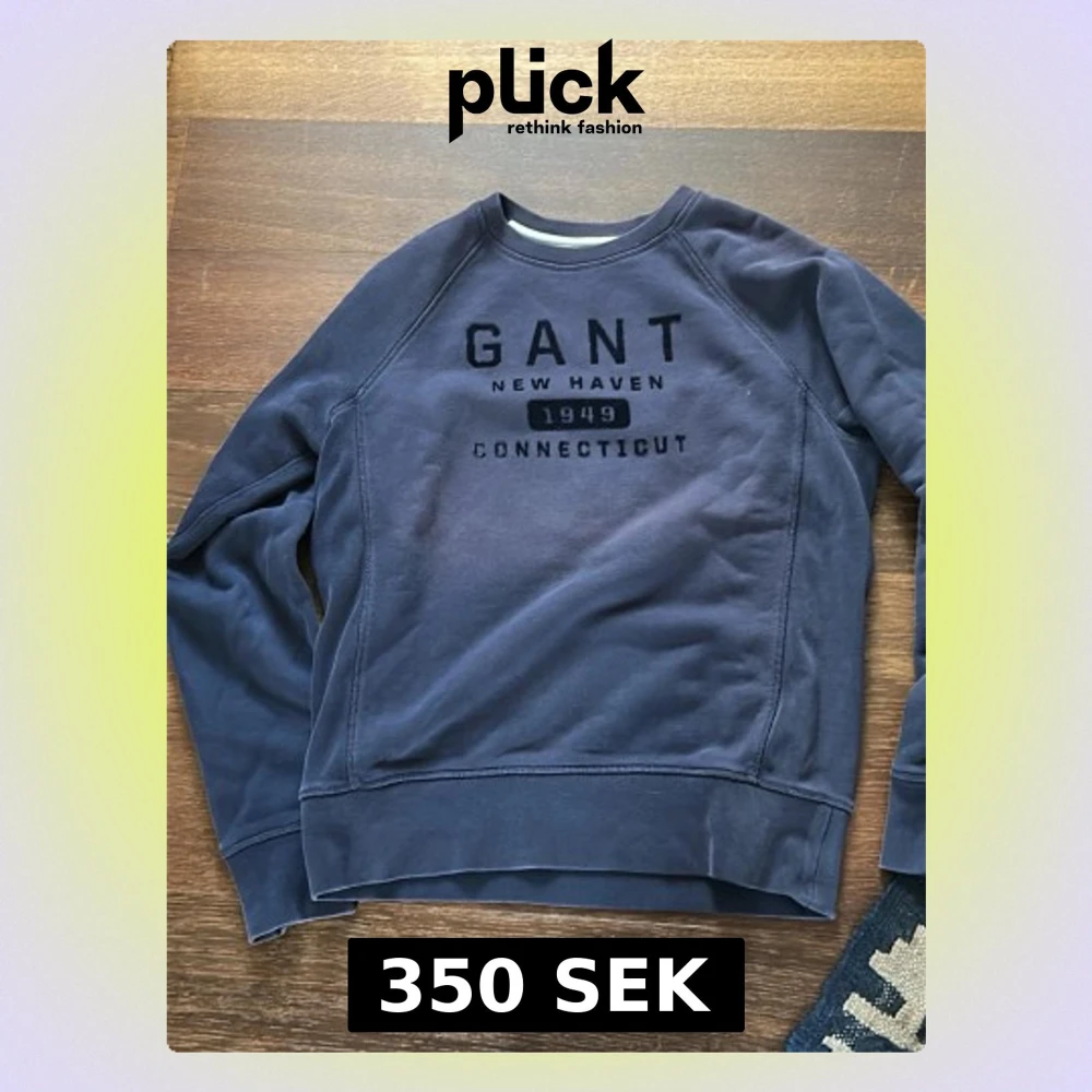 Mörkblå sweatshirt från GANT med tryck på bröstet där det står 'GANT New Haven 1949 Connecticut'. Tröjan har rund halsringning, långa ärmar och ribbade muddar vid ärmslut och nederkant. Perfekt för en avslappnad och stilren look.