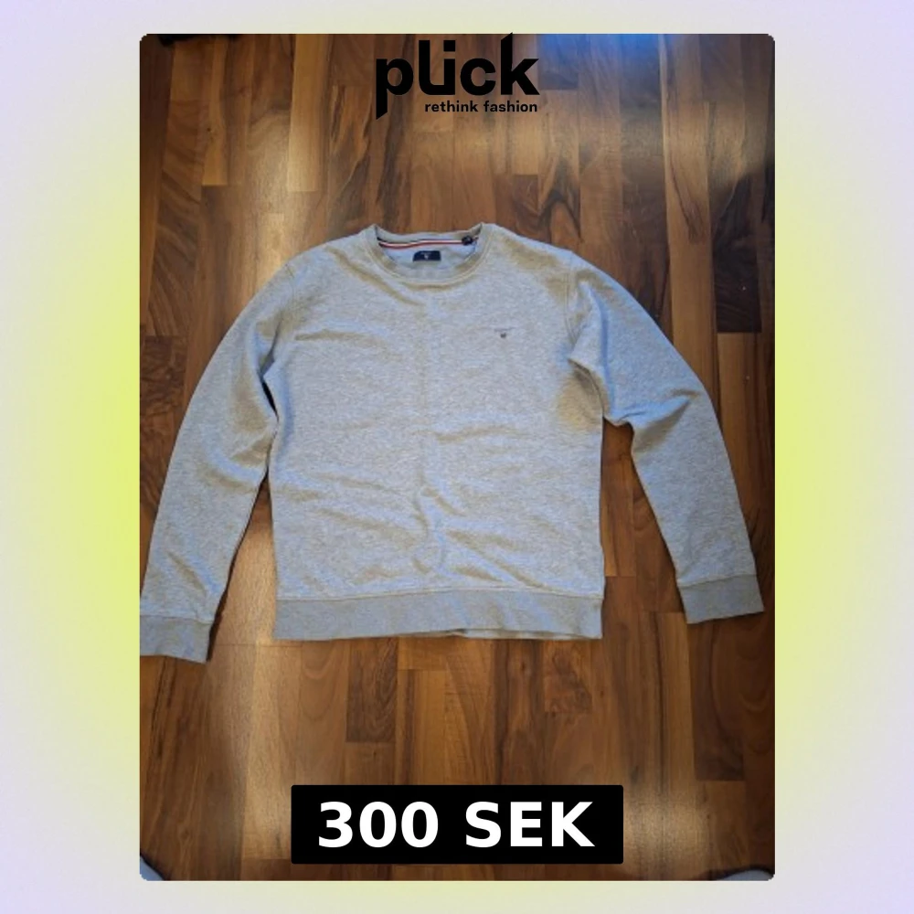 Snygg grå sweatshirt från GANT i storlek medium. Tröjan har rund hals, långa ärmar och ett broderat GANT-logo med sköld på bröstet. Insidan av kragen har en cool detalj med röd, vit och marinblå rand. Perfekt för chill dagar.
