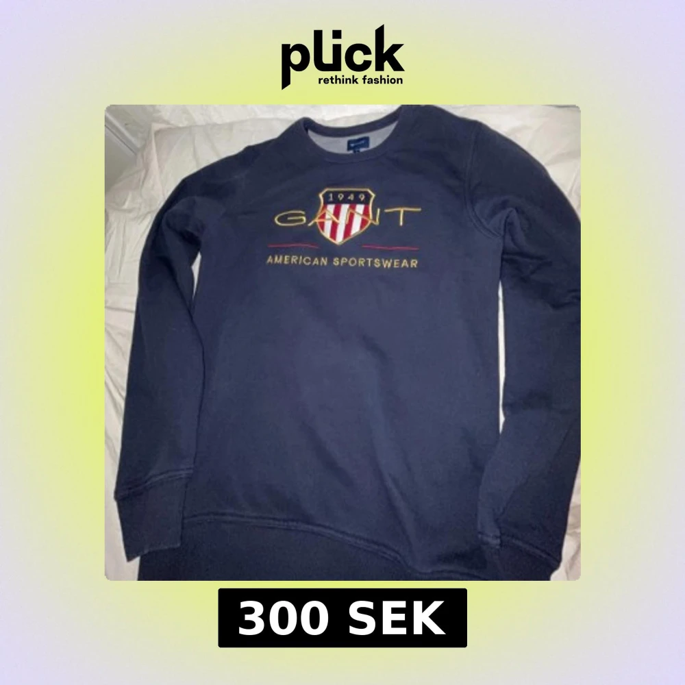 Säljer en stilren mörkblå sweatshirt från GANT med tryck framtill. Tröjan har långa ärmar och rund halsringning. Perfekt för en avslappnad stil.