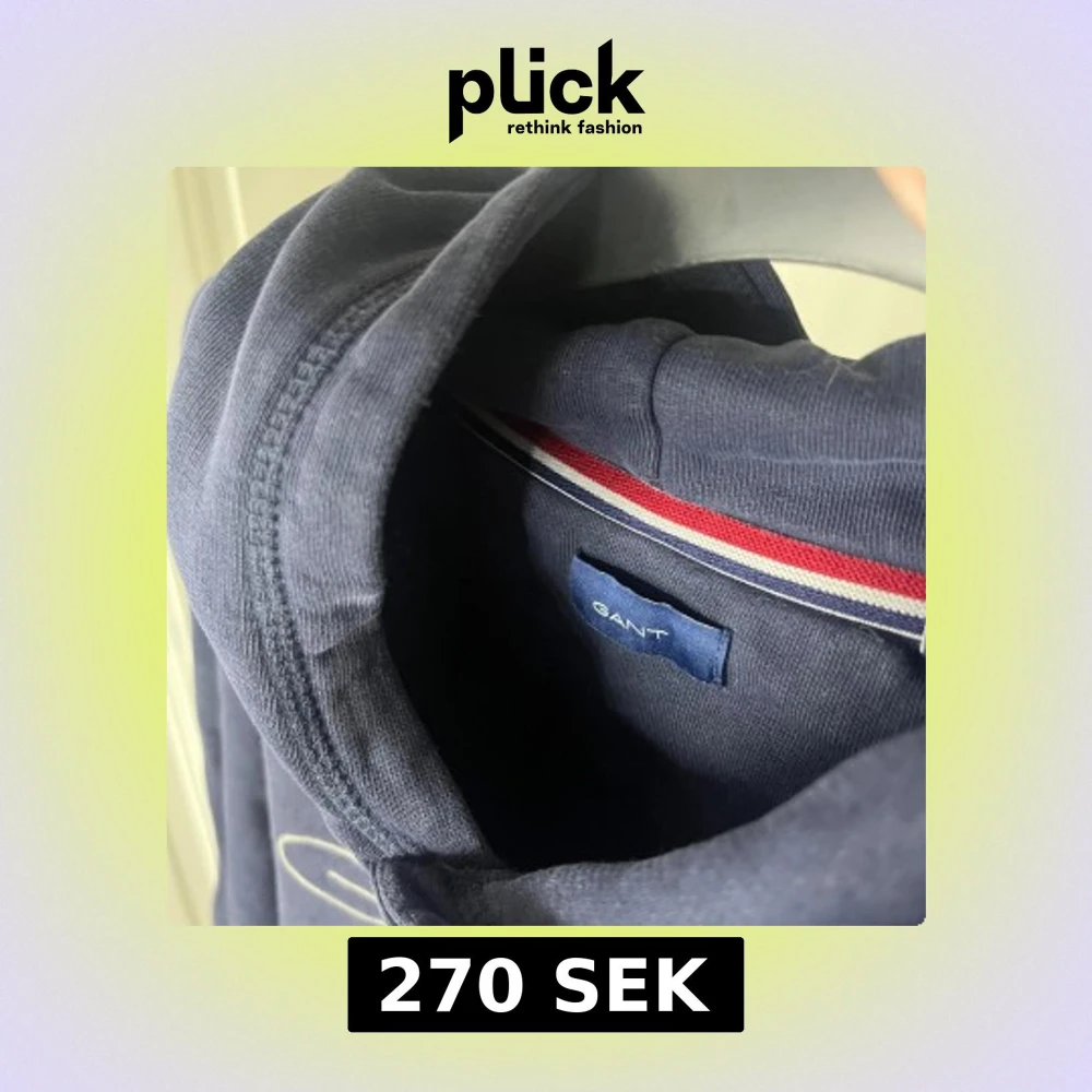 Säljer en snygg mörkblå hoodie från GANT med logga och emblem på bröstet. Tröjan har en klassisk känguruficka och en bekväm huva. Perfekt för en avslappnad stil.
