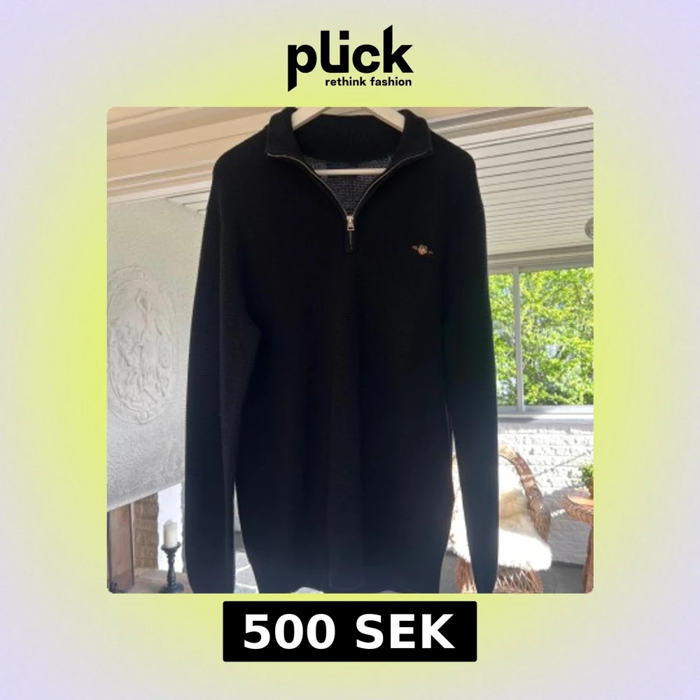 Säljer en svart stickad tröja från Gant med halv dragkedja och liten broderad logga på bröstet. Storlek M men kan även passa en större storlek. Nytt pris 1700 kr, mitt pris 500 kr✅