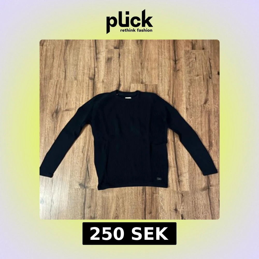 Säljer en stilren mörkblå ribbad tröja från Selected Homme. Tröjan har långa ärmar och en klassisk rund halsringning. Perfekt för en avslappnad men ändå snygg look. Passar bra till både jeans och chinos.