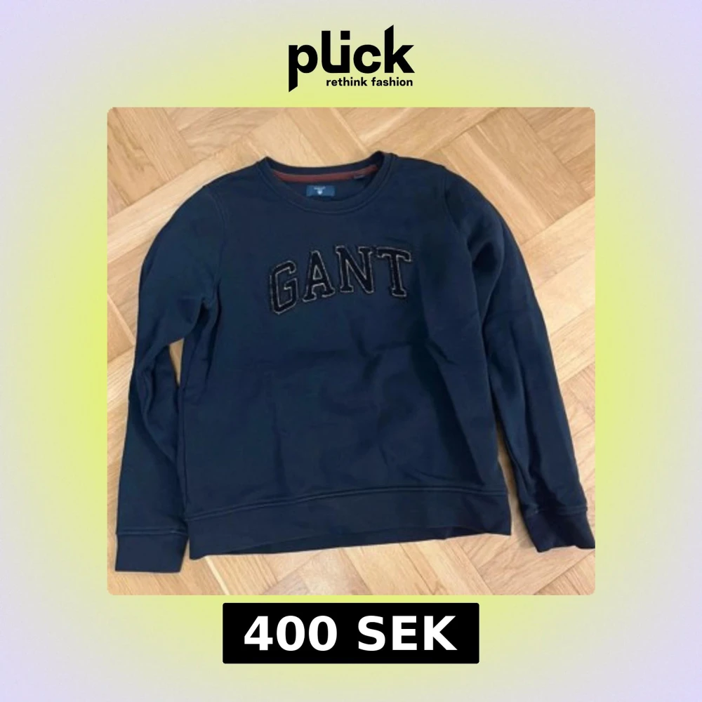 Snygg mörkblå sweatshirt från GANT i storlek M med broderad logga i svart och guld på bröstet. Tröjan har rund hals, långa ärmar och är gjord i mjuk bomull.