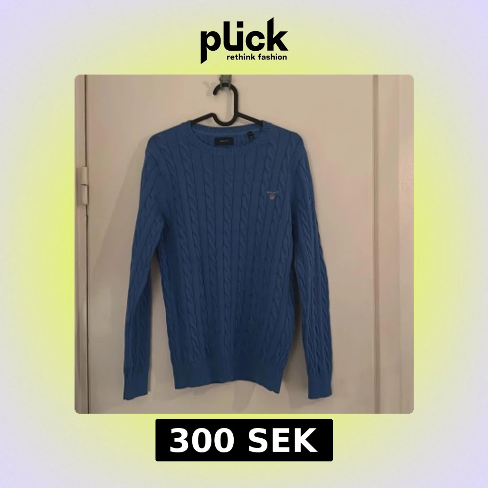 Säljer en blå kabelstickad tröja från Gant med broderad logga på bröstet. Tröjan har rund halsringning, långa ärmar och ribbade muddar. Perfekt för dig som gillar klassisk och stilren look.