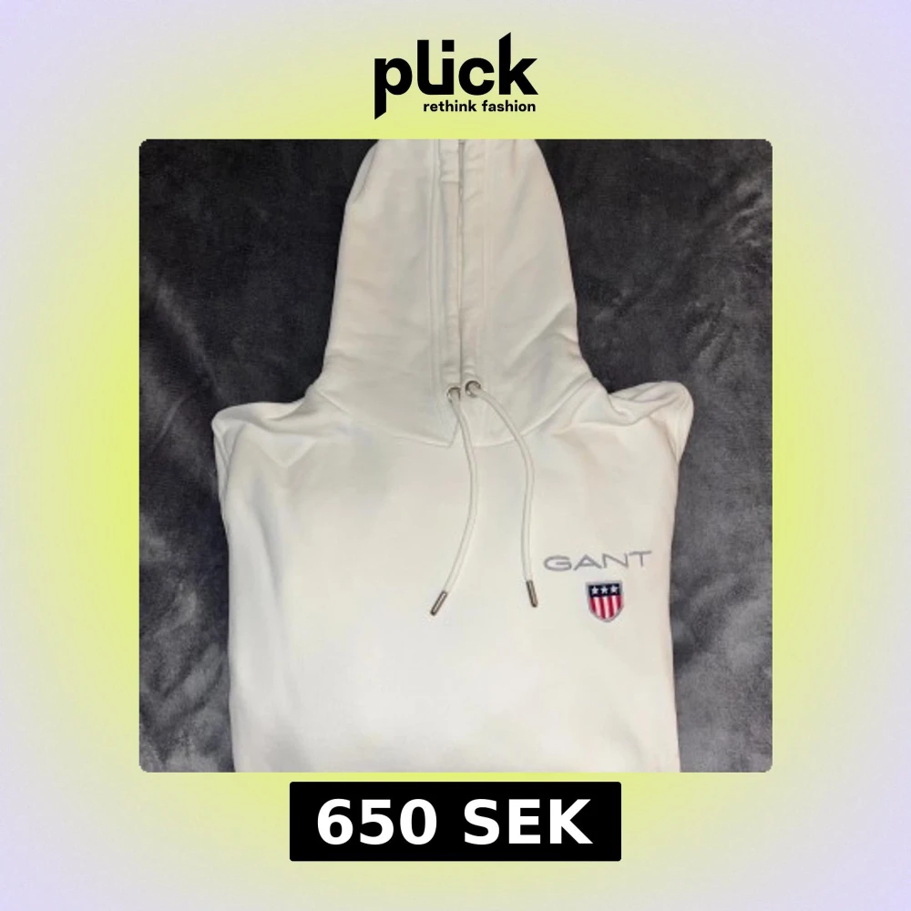 Vit hoodie från GANT med broderad logga och amerikanskt sköldmärke på bröstet. Tröjan har huva med snörning och är tillverkad i mjuk bomull. Perfekt för en clean och stilren look. Köpt från Johnells. Originalpris: 1000kr
