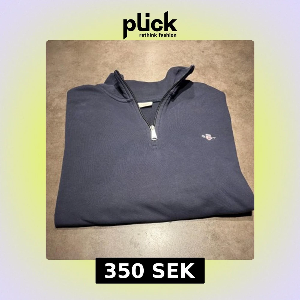 Säljer en snygg Marin Blå Gant Quarter Zip. Snygg, skönt material på insidan och stilren. långärmad tröja från GANT med Quarter zip och stilren. Storlek: L. Skriv vid frågor eller kom med bud!