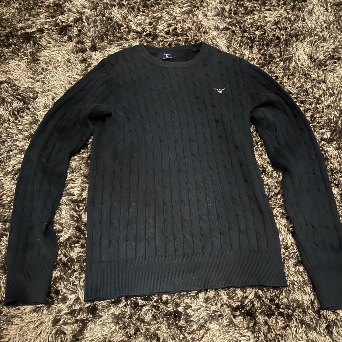 Säljer en stilren marinblå kabelstickad tröja från Gant. Tröjan har en rund halsringning och långa ärmar, perfekt för kyligare dagar. Den har en diskret logga på bröstet. Passar både till jeans och chinos. Passar 159 cm