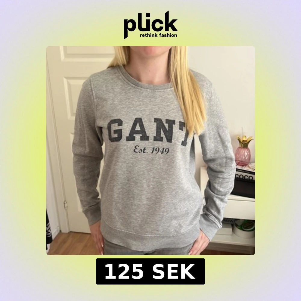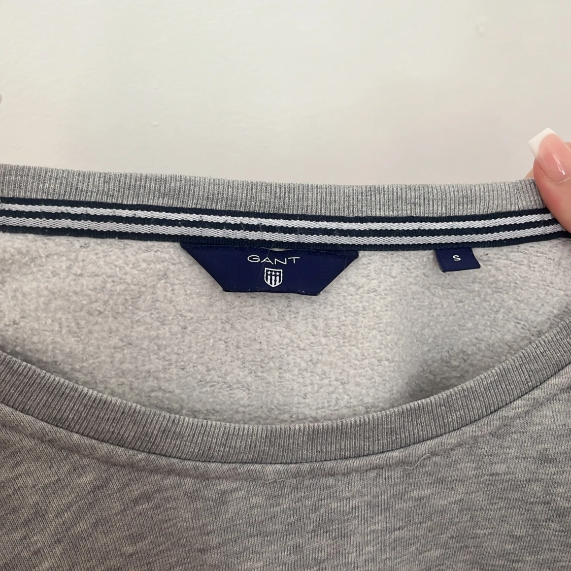 Säljer en klassisk grå sweatshirt från GANT med tryck framtill. Den är perfekt i storlek och har inte använts på ett bra tag!