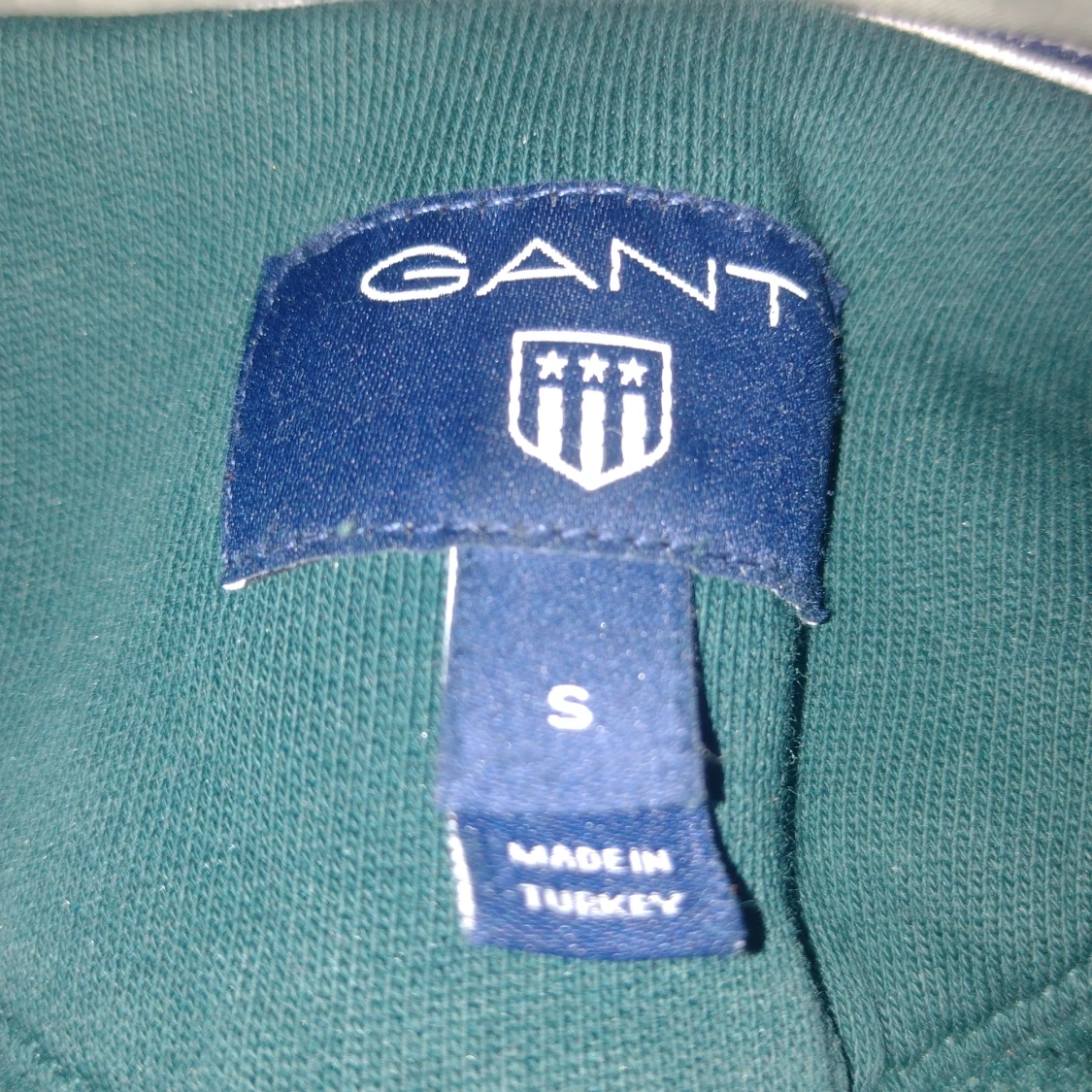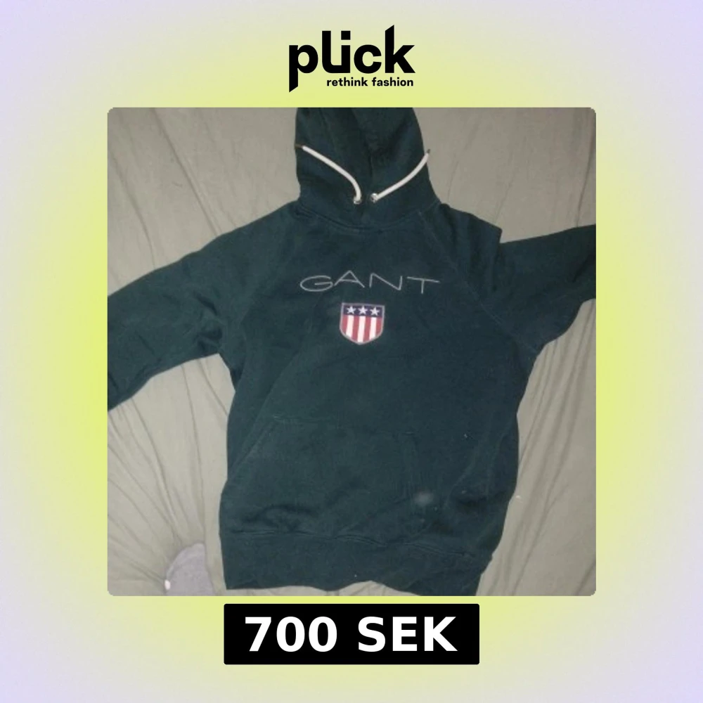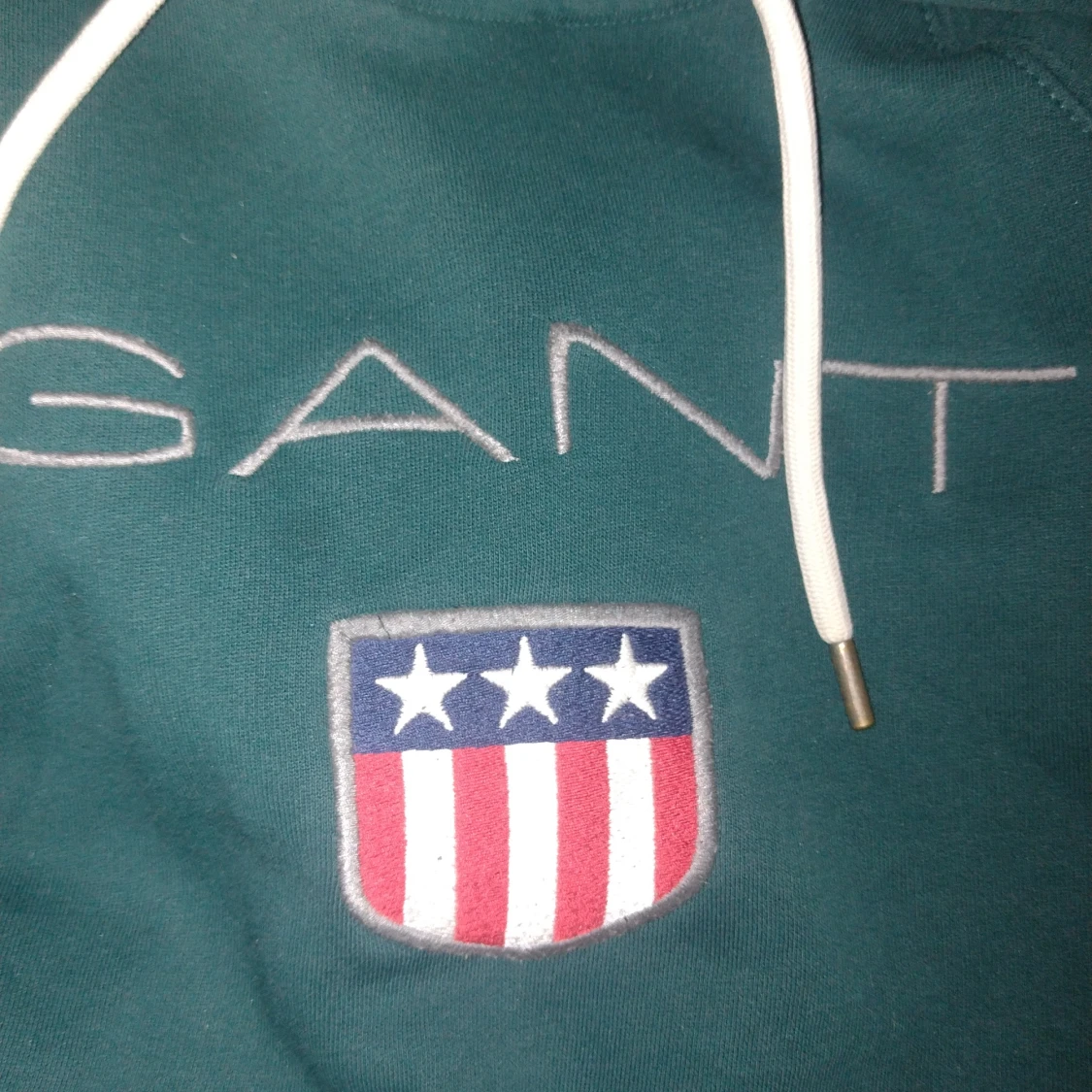Snygg mörkgrön hoodie från GANT med broderad logga och sköld på bröstet. Tröjan har huva med vita snören och en stor magficka. Perfekt för dig som gillar klassisk och sportig stil.