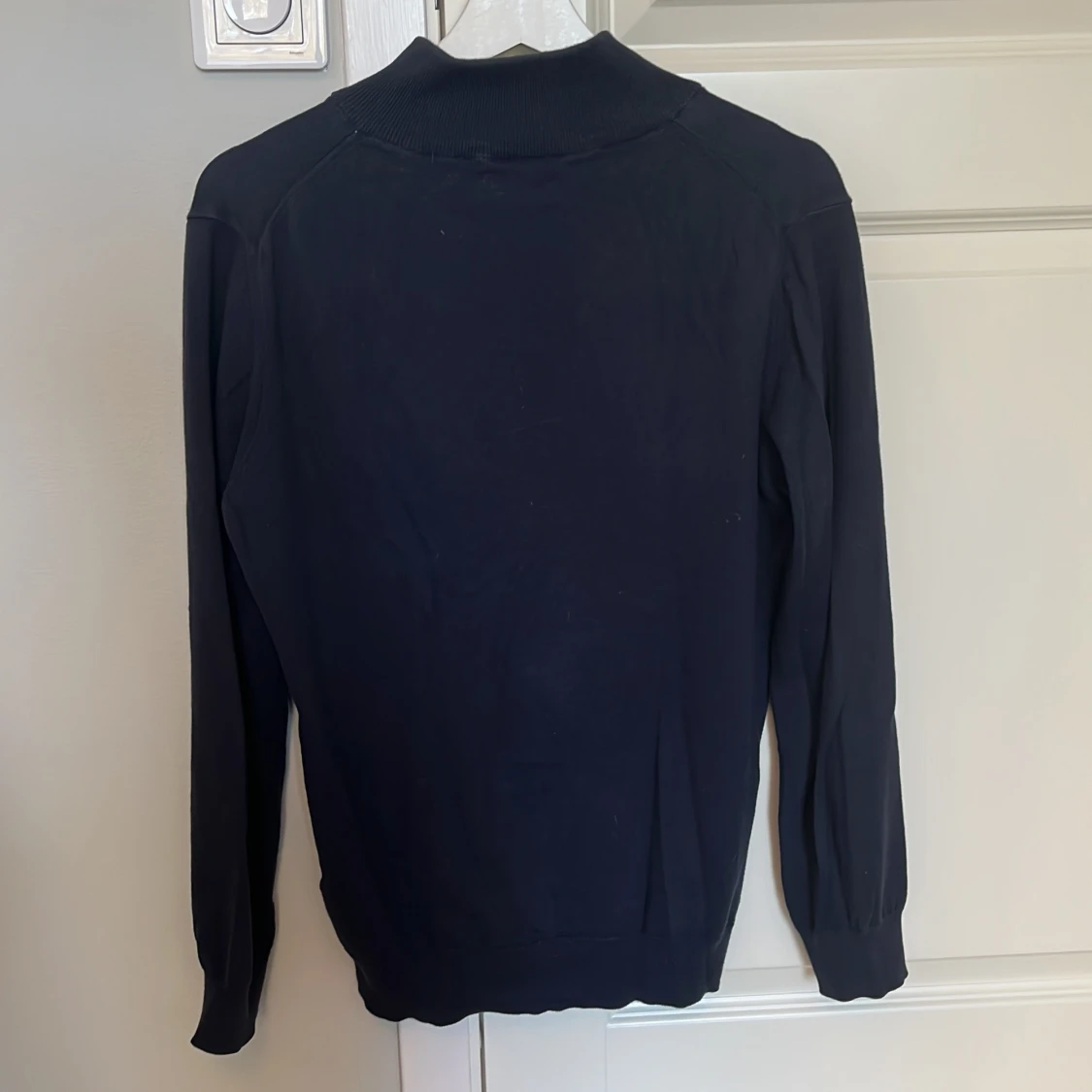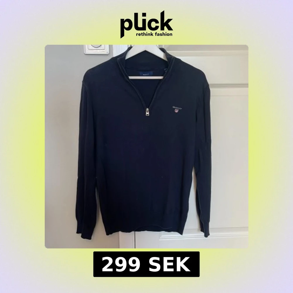 Snygg marinblå långärmad tröja från GANT med half zip och liten broderad logga på bröstet. Tröjan har en klassisk passform och är tillverkad i mjuk bomull, perfekt för lager-på-lager-stil under höst och vinter.