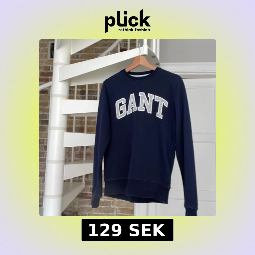 Säljer en mörkblå sweatshirt från GANT med klassisk rund hals och stora vita bokstäver framtill. Tröjan har långa ärmar och en relaxed passform, perfekt för en chill och stilren look. Tillverkad i mjuk bomull för extra komfort.
