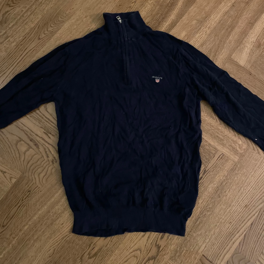 Säljer en stilren svart tröja från Gant med dragkedja vid halsen. Tröjan har långa ärmar och en liten logotyp på bröstet. Perfekt för en avslappnad och snygg look.