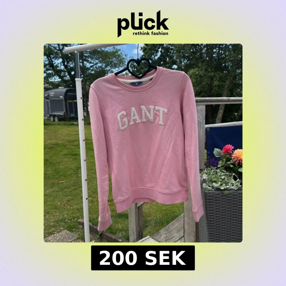 Säljer en ljusrosa sweatshirt från GANT med broderad logga framtill. Tröjan har rund halsringning och långa ärmar. Tillverkad i mjuk bomull, perfekt för en chill och stilren look.