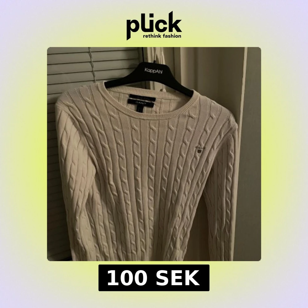 Säljer en stilren vit kabelstickad tröja från GANT i stretchig bomull. Tröjan har en klassisk rund hals och långa ärmar, perfekt för kyligare dagar. En tidlös garderobsklassiker! Orginal priste 600