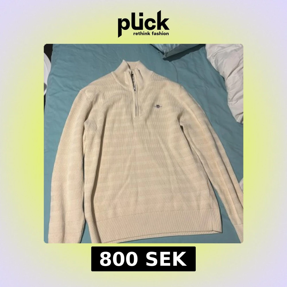 Säljer en stilren beige tröja från GANT i storlek S. Tröjan har en halv dragkedja framtill och är ribbad med ett diskret mönster. Perfekt för en avslappnad och snygg look. Använd en gång!!!