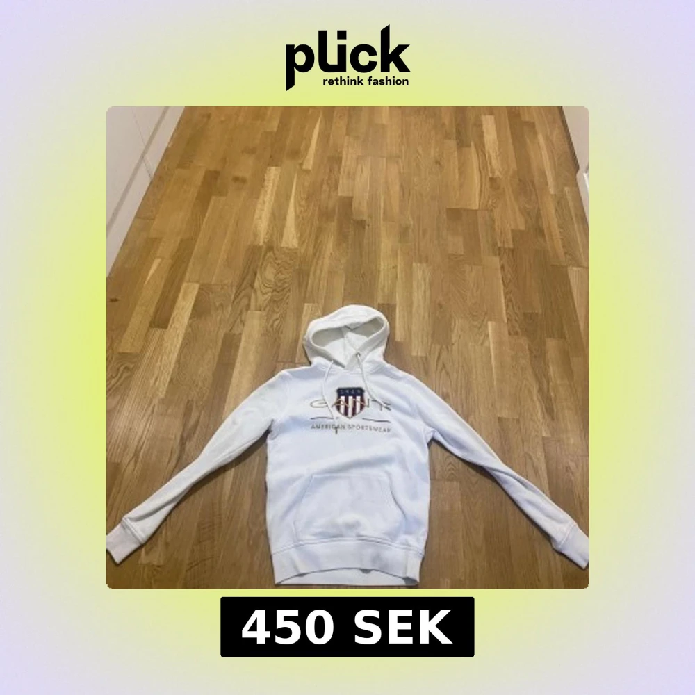 Säljer en vit hoodie från GANT med stort tryck och logga på bröstet. Tröjan har huva med snörning, magficka och långa ärmar. Perfekt för dig som gillar klassisk amerikansk stil och vill ha något bekvämt och snyggt.