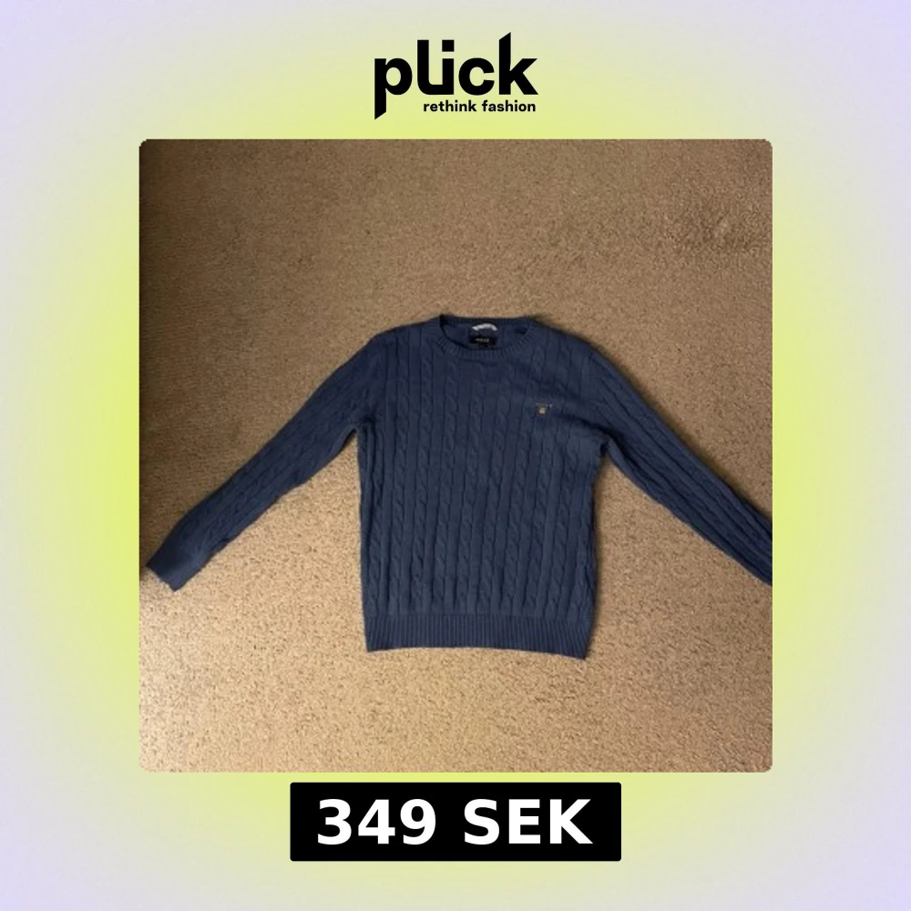 Säljer en snygg blå kabelstickad tröja från GANT. Tröjan har en klassisk design med rund hals och klassiska Gant märket på framsidan. Hör av er vid funderingar!