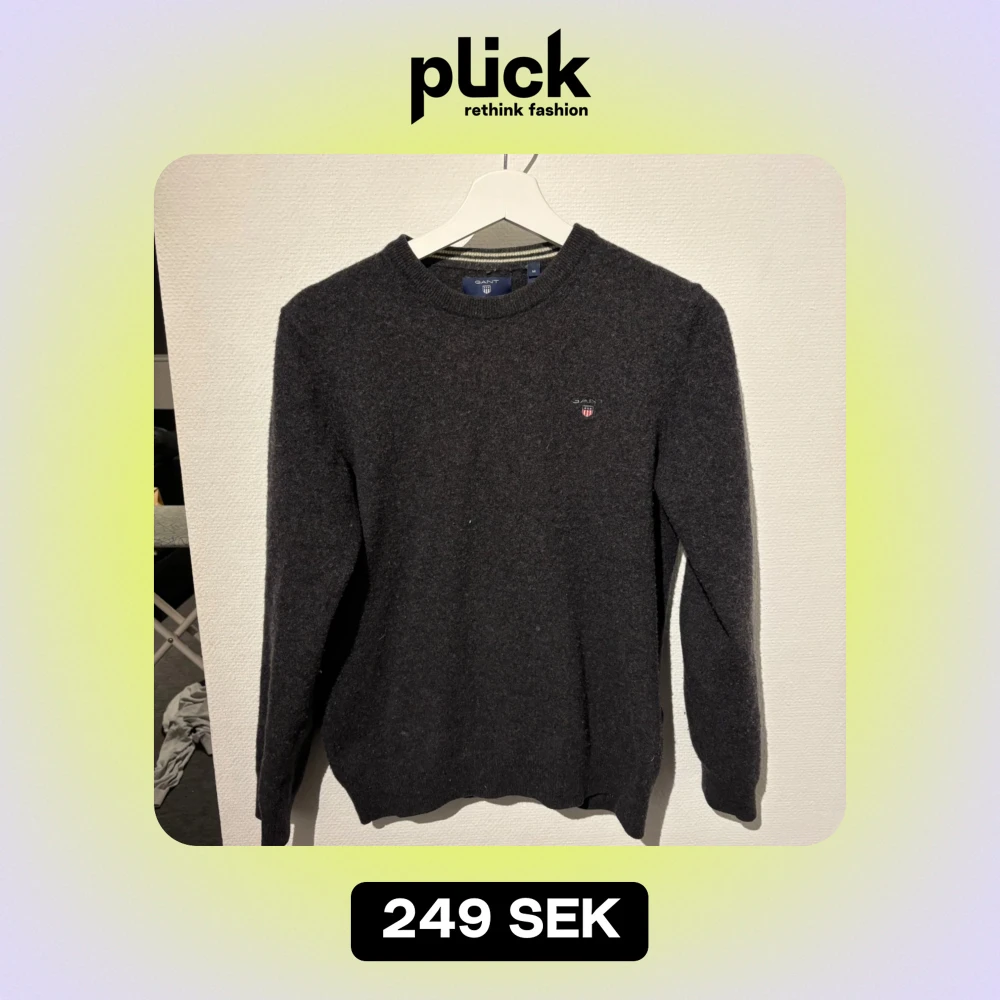 Säljer en stilren mörkgrå tröja från GANT i superfin lammull. Tröjan har en klassisk rund halsringning och ett diskret broderat märke på bröstet. Perfekt för kyliga dagar! Liten i storlek pga tvättad, passar S och XS