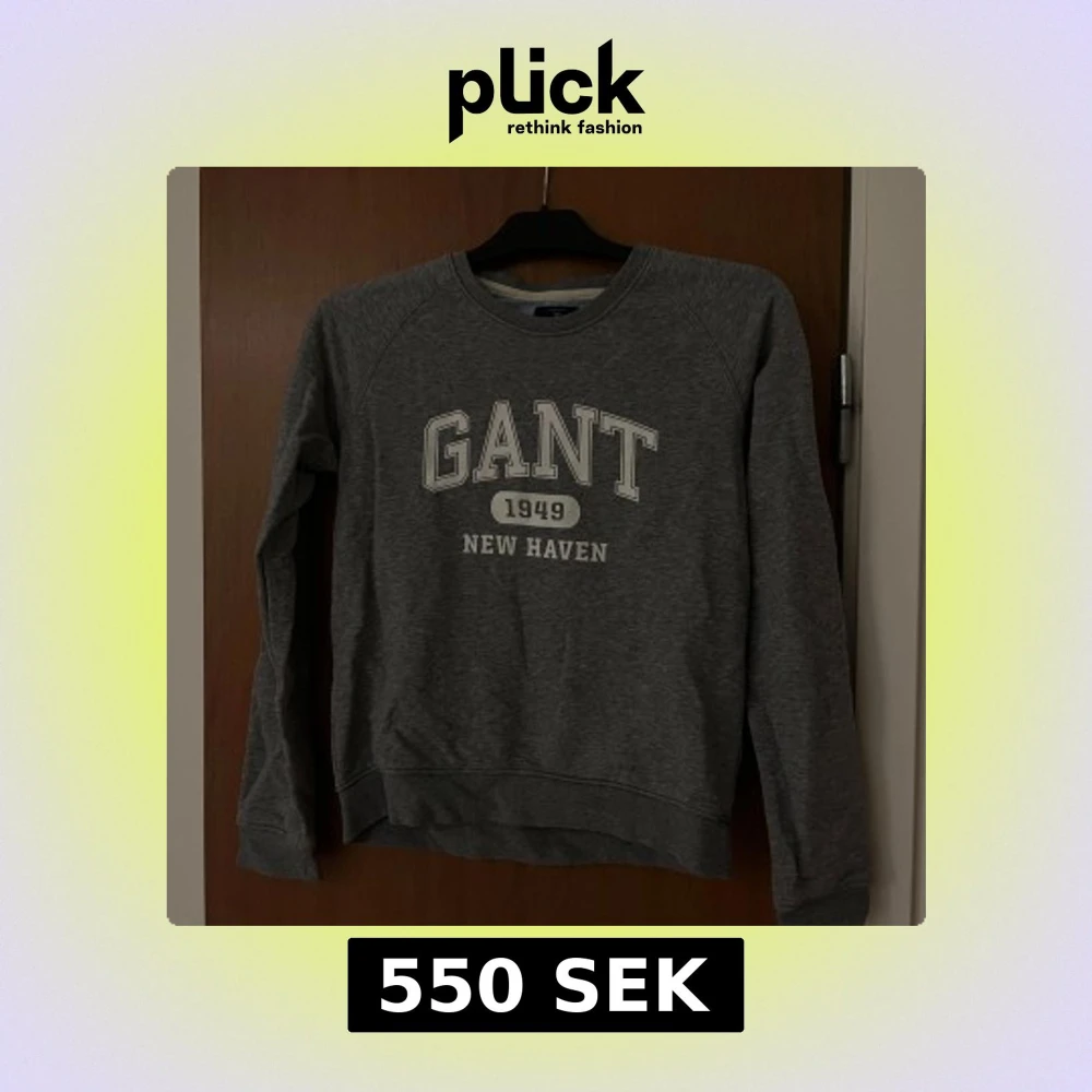 Säljer en klassisk grå sweatshirt från GANT med tryck '1949 New Haven' på framsidan. Nypris 1200 på afound. Pris går att diskutera