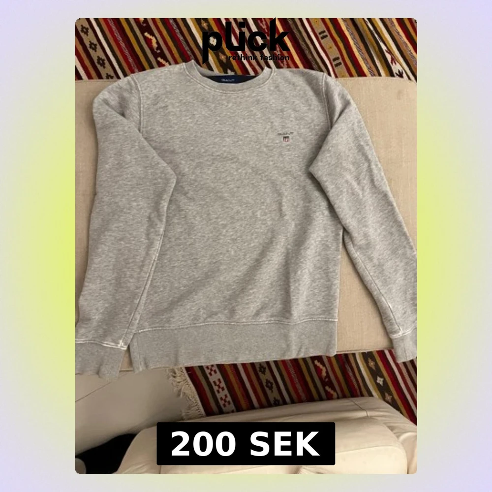 Klassisk grå sweatshirt från GANT i storlek S. Tröjan har rund halsringning, ribbade muddar vid ärmslut och nederkant samt en liten broderad GANT-logga på bröstet. Perfekt basic-plagg för lager på lager och chill stil. Lite urtvättning vid handlederna.