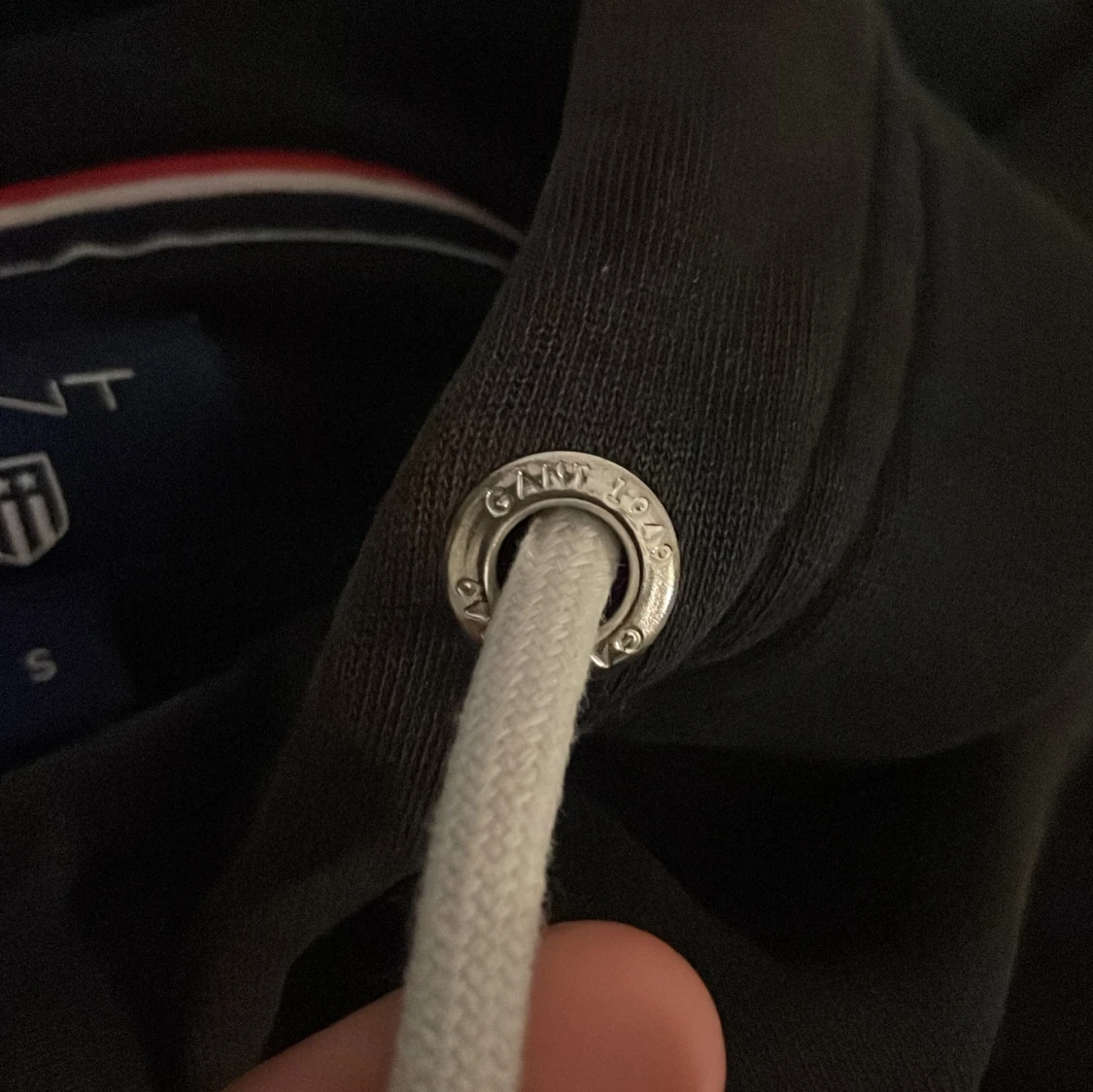 Svart hoodie från GANT med vit snörning och stor broderad logga på bröstet. Klassisk huva och lång ärm, perfekt för en chill och sportig look. Tillverkad i mjuk bomullsmix som känns skön mot huden.