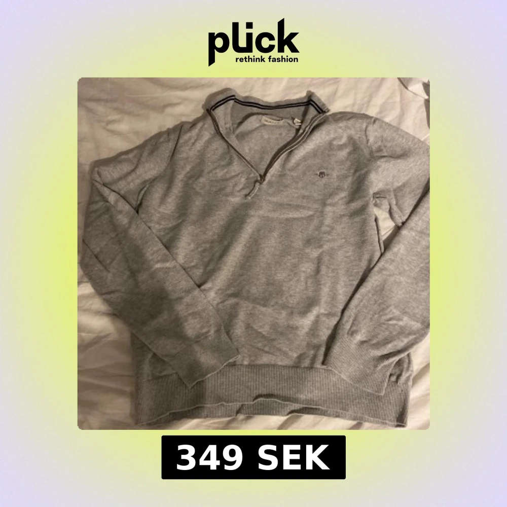 Snygg grå långärmad tröja från GANT med half zip och ribbade muddar. Klassisk ståkrage med svarta ränder och liten broderad logga på bröstet. Perfekt för dig som gillar stilren och enkel design. Passar runt 170-176.