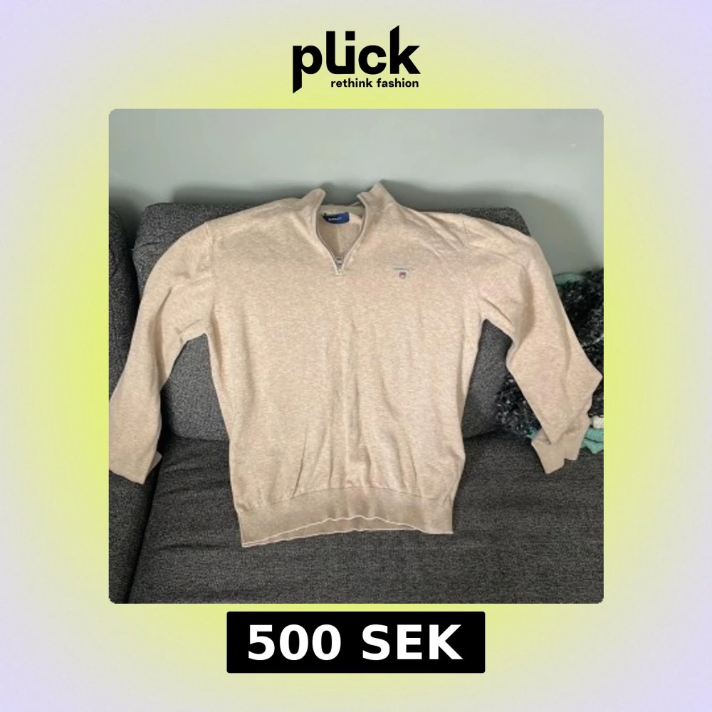 Snygg beige långärmad tröja från Gant med half zip och liten broderad logga på bröstet. Tröjan har en klassisk passform och är gjord i mjuk bomull, perfekt för lager-på-lager och chill stil.