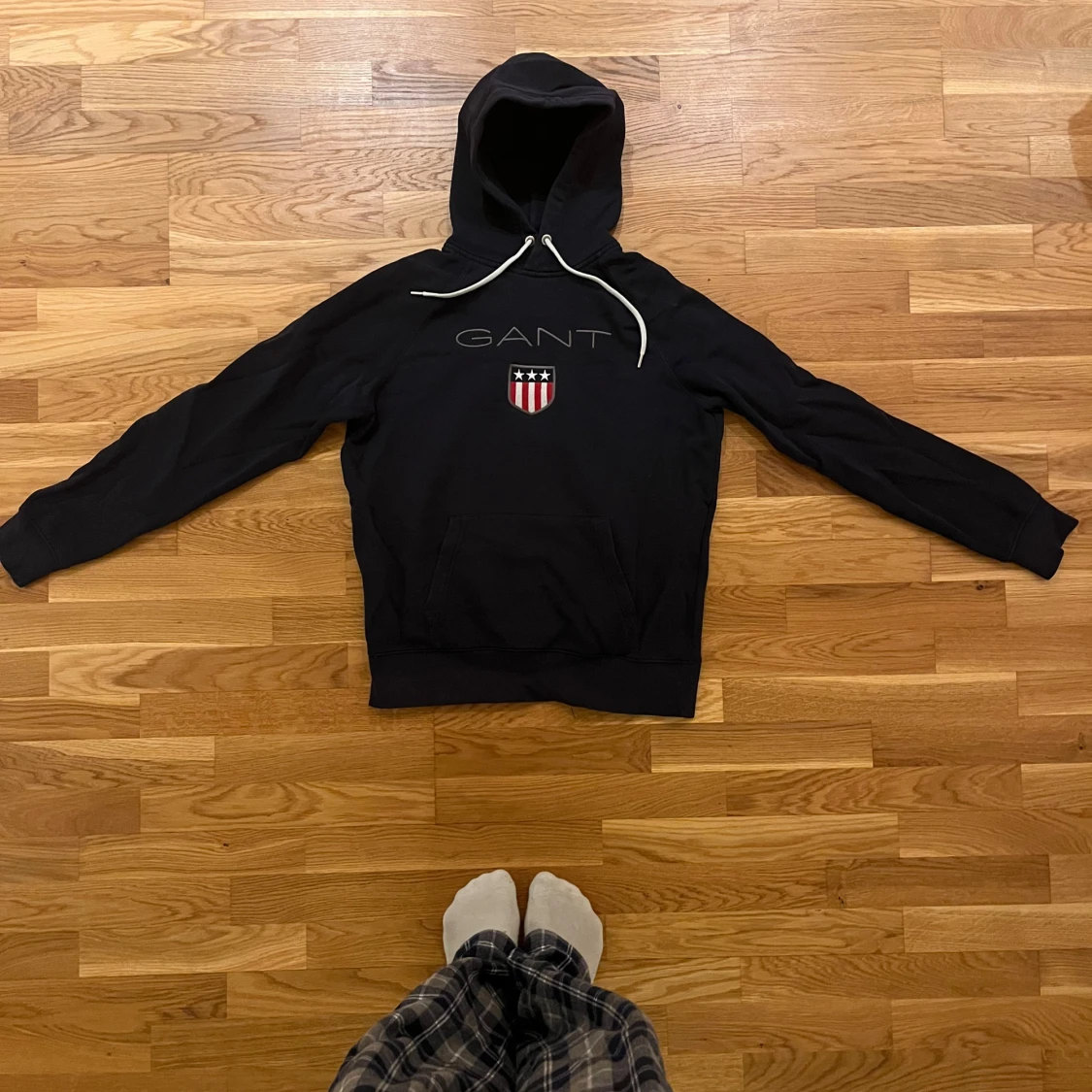 Säljer en snygg svart hoodie från GANT i storlek L men den sitter som en S.