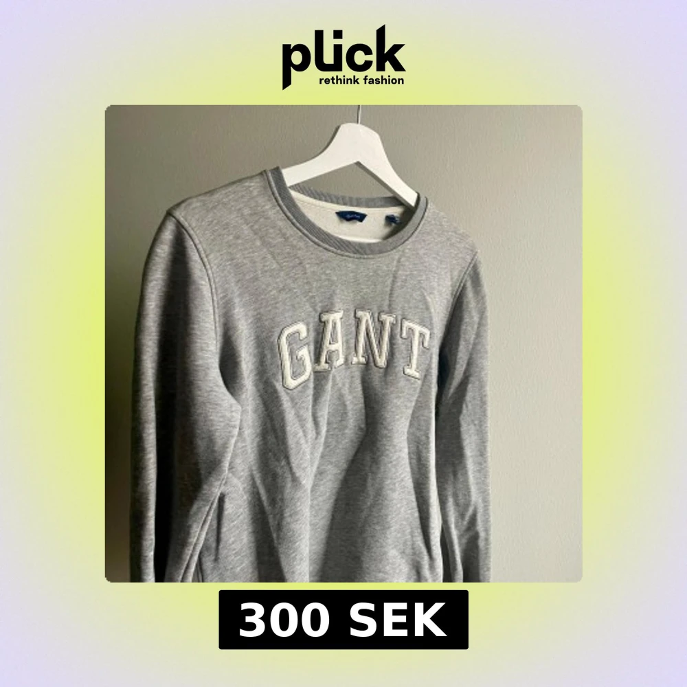 Säljer en stilren grå sweatshirt från GANT med deras logga i vitt på bröstet. Tröjan har rund hals och långa ärmar, perfekt för en avslappnad look. Passar bra till tex jeans. Använd ytterst få gånger!