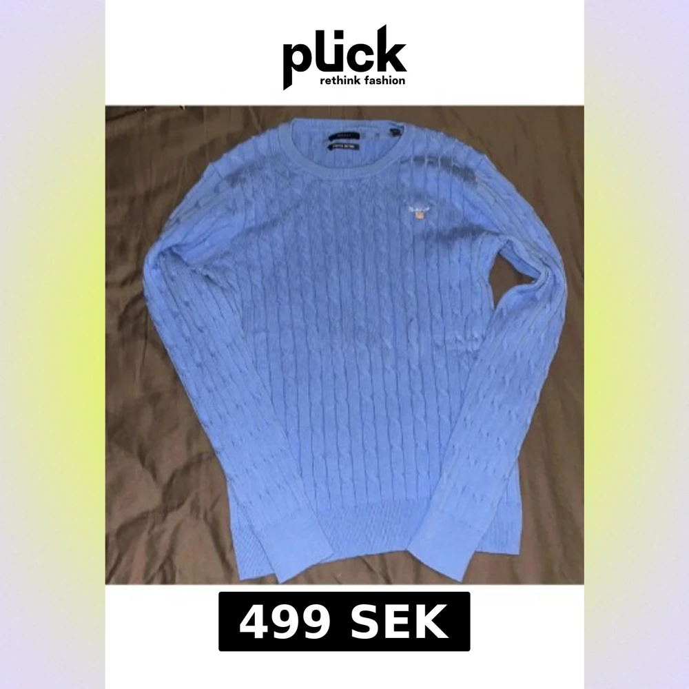 Blå kabelstickad tröja från GANT med rund hals och diskret logga broderad på bröstet. Tröjan har långärmad passform och ribbade muddar vid ärmslut och nederkant.Finns ej prislapp, togs bort vid öppning. Varan är aldrig använd säljs då min brorsa fick den i present men passad inte han. Storlek är M fast ganska säker på att det passar S passformen är tajt. Normal pris är 1600kr säljs för 499 eftersom jag inte ser att den är värd 1600 i mina ögon.