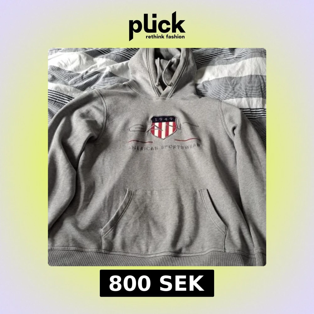 Säljer en grå hoodie från GANT i storlek XL. Tröjan har broderad logga och sköld på bröstet, känguruficka och justerbar huva med snörning. Tillverkad i mjuk bomullsmix, perfekt för chill dagar.