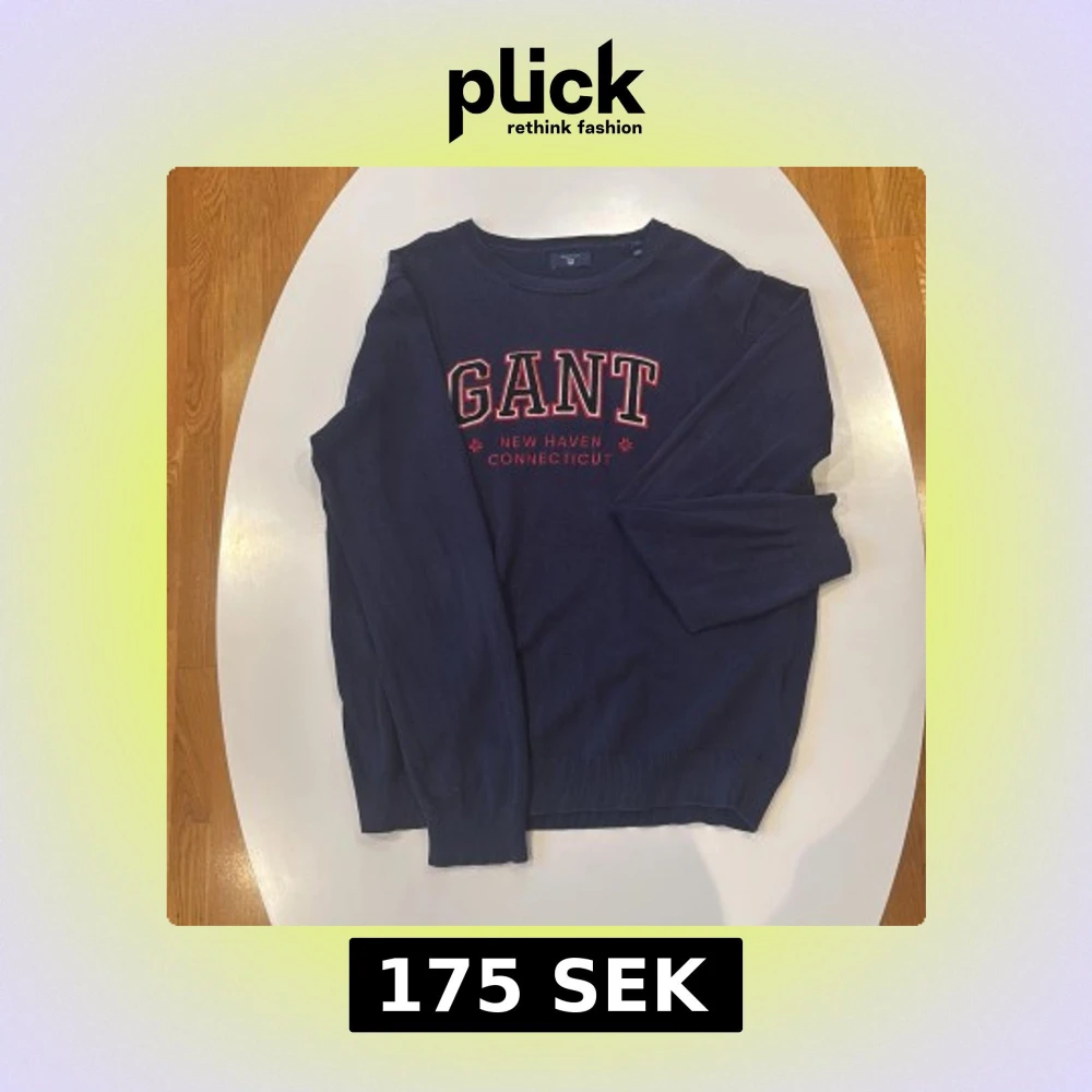 Snygg marinblå stickad tröja från GANT i storlek XL. Tröjan har broderad logga och texten 'New Haven Connecticut' i rött och vitt framtill. Rund hals och långa ärmar med ribbade muddar. Perfekt för dig som gillar klassisk college-stil.