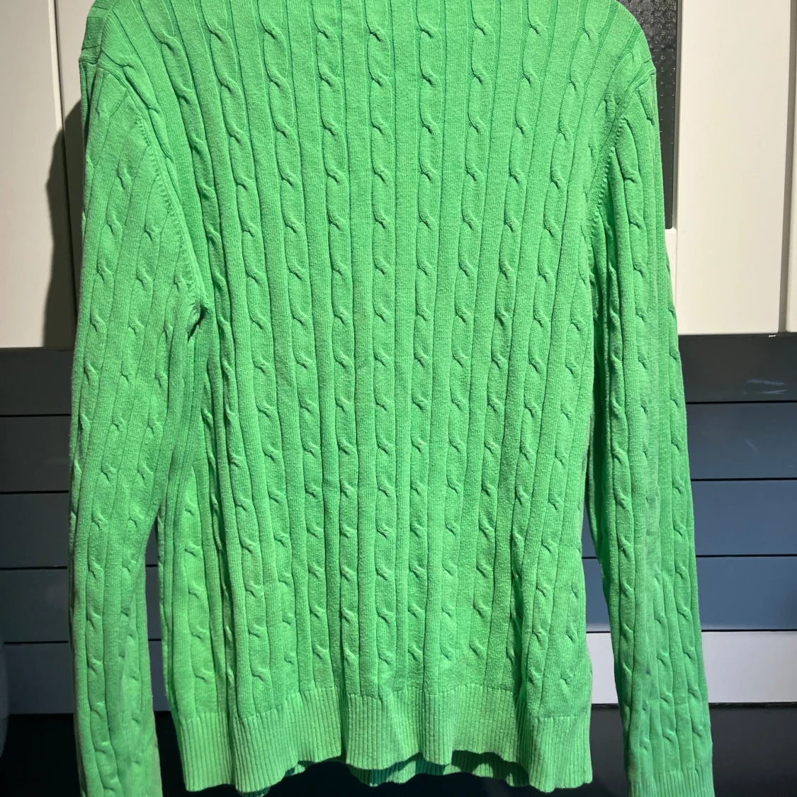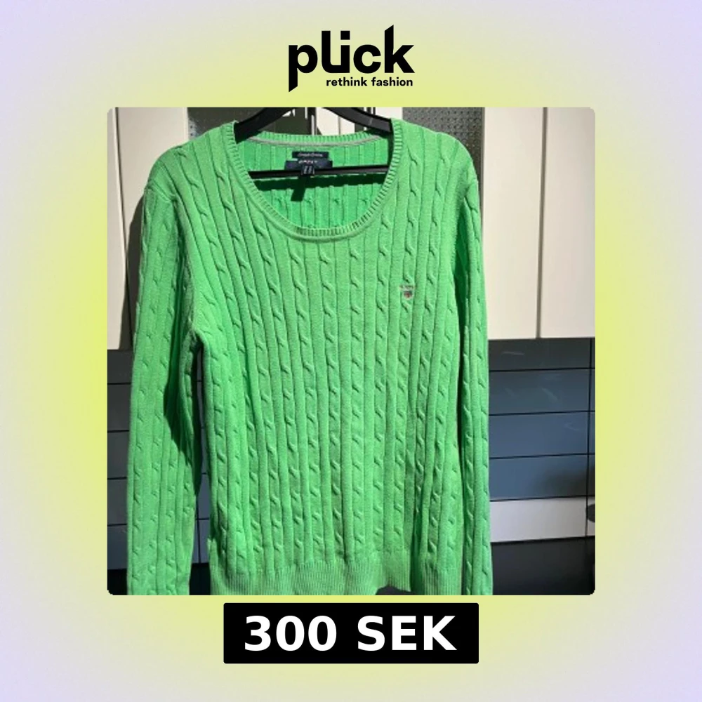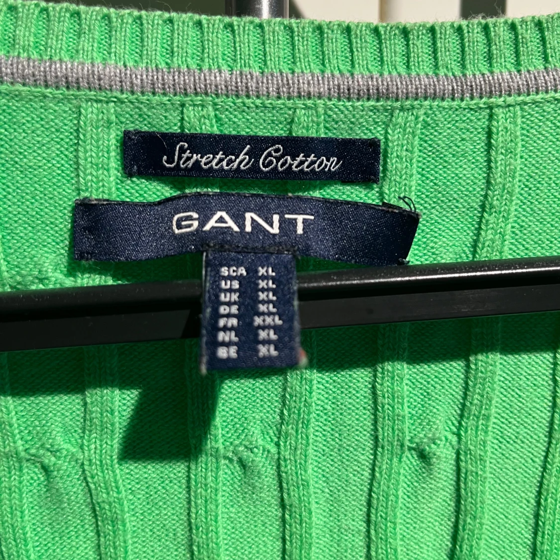 Fräsch grön kabelstickad tröja från GANT i stretchig bomull. Tröjan har rund hals, ribbade muddar och ett litet broderat GANT-emblem på bröstet. Perfekt för dig som gillar klassisk stil med en färgklick.