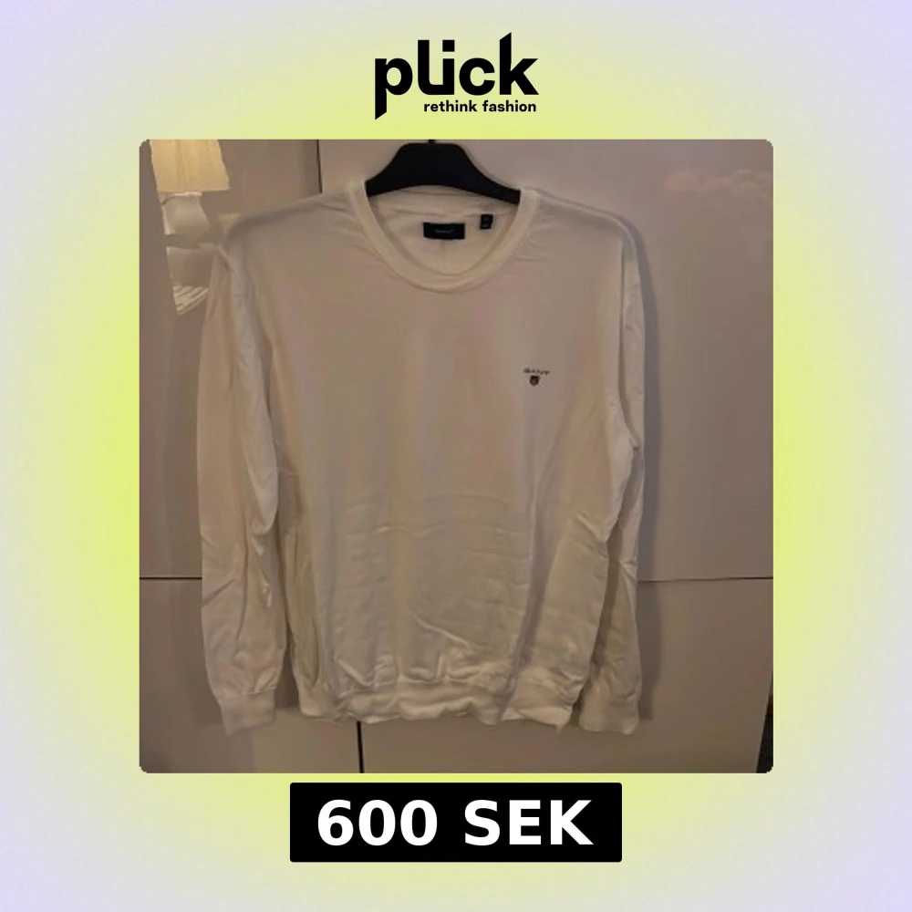 Vit långärmad tröja från GANT i storlek XL. Tröjan har rund halsringning och ett litet broderat GANT-logo på bröstet. Mjuk och skön känsla, perfekt för chill dagar. Ribbstickade muddar vid ärmslut och nederkant ger en snygg passform.