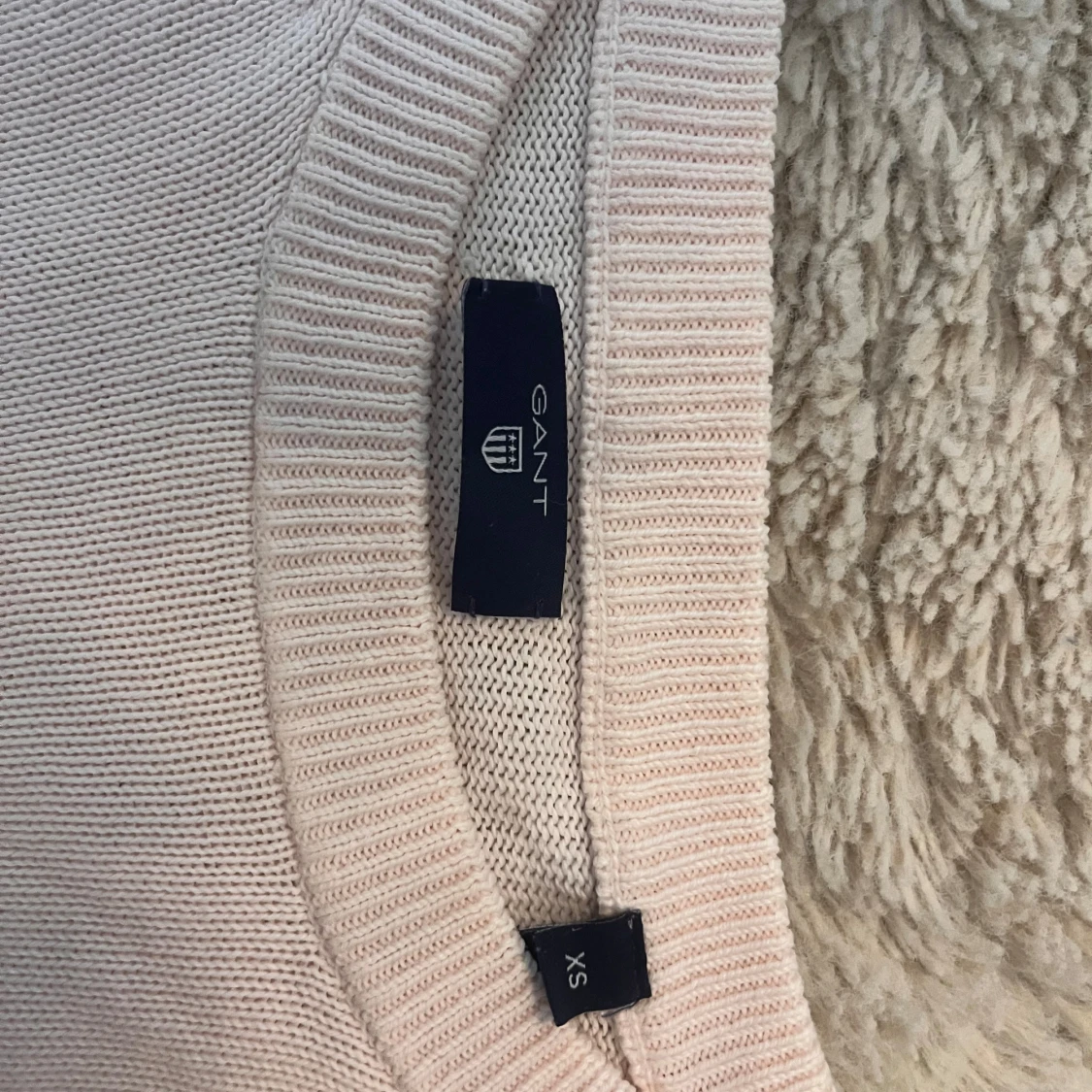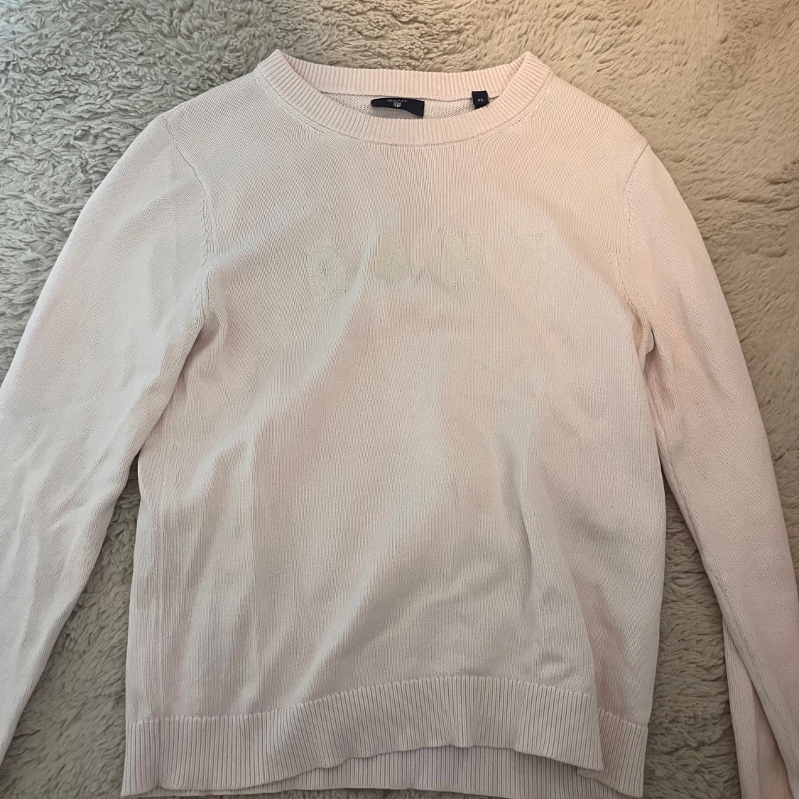 Superfin ljusrosa stickad tröja från Gant med diskret broderad logga framtill. Tröjan har rund halsringning, ribbade muddar och är långärmad. Perfekt för lager-på-lager och passar till allt. Snygg och enkel att styla!