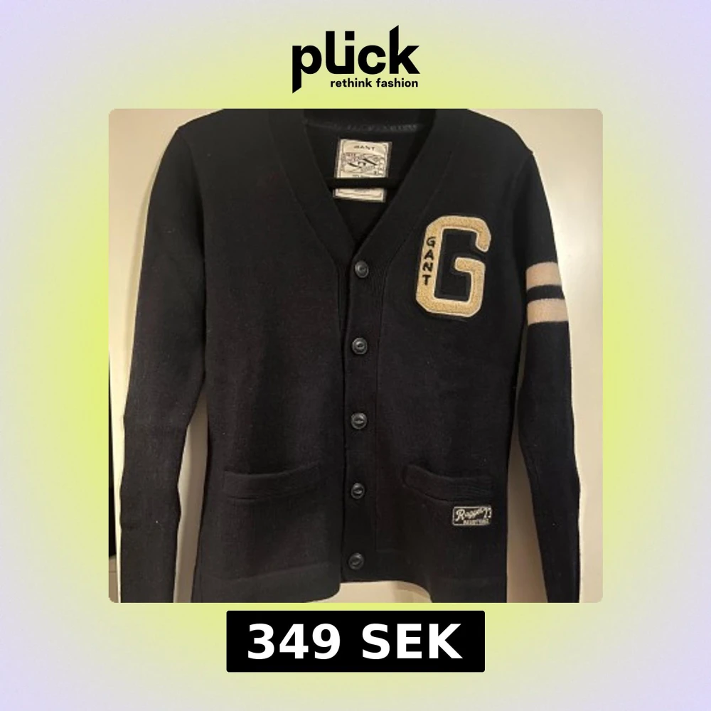 Snygg svart kofta från Gant med ett stort 'G' på bröstet och två vita ränder på ärmen. Koftan har knappar framtill och två fickor. Perfekt för en stilren look. 100% ull!