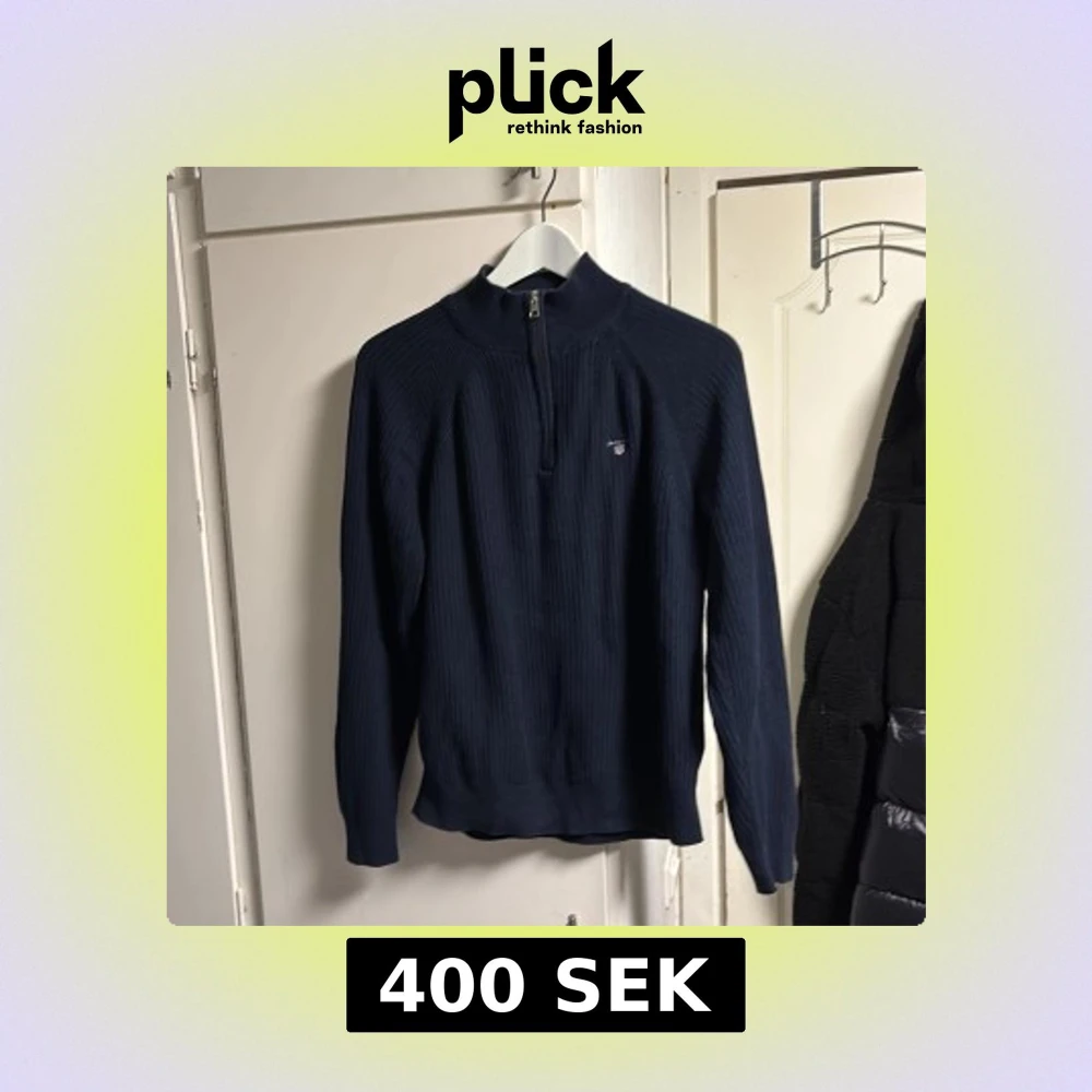 Säljer en stilren mörkblå stickad tröja från Gant med dragkedja vid halsen. Tröjan har långa ärmar och ett diskret broderat märke på bröstet. Perfekt för kyligare dagar. PRIS KAN DISKUTERAS!